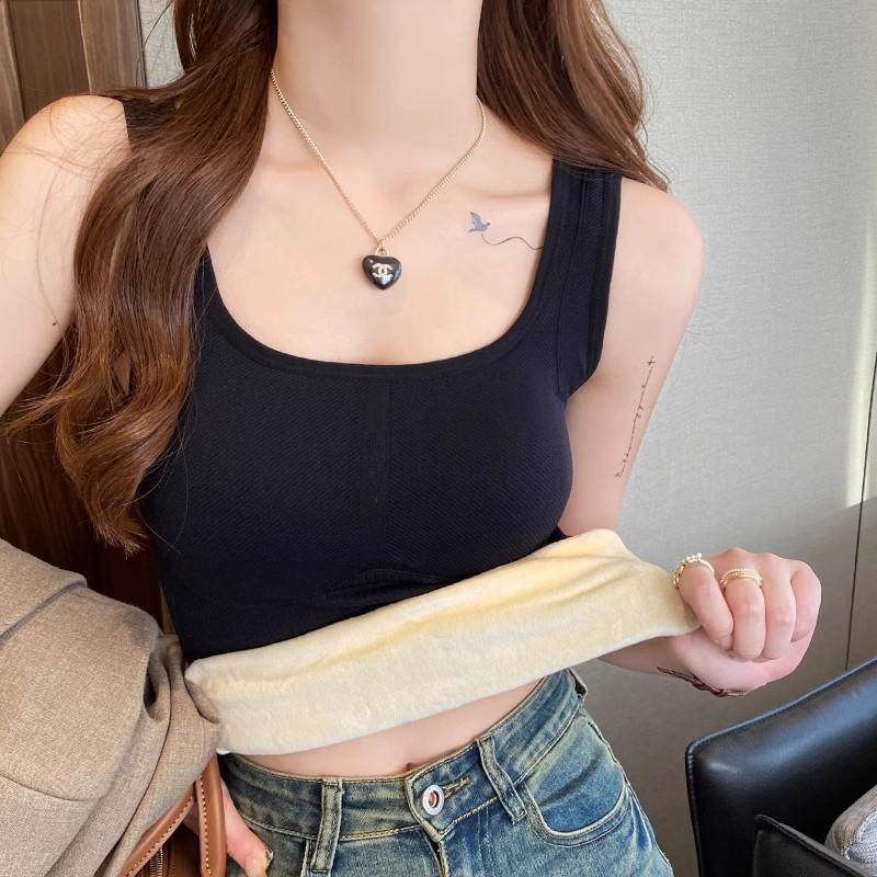 磨毛保暖背心女2025冬新款带胸垫一体无痕吊带打底内衣加绒加厚