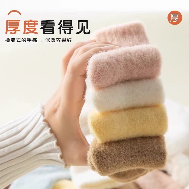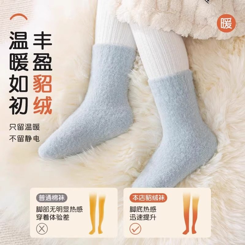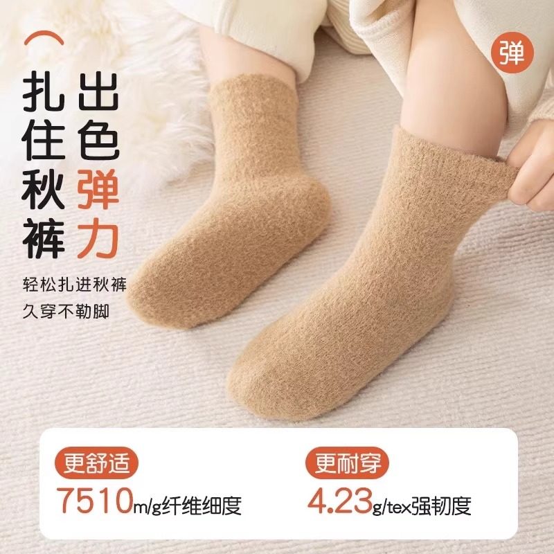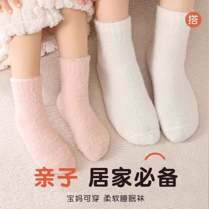 儿童袜子加厚秋冬季男女童加绒毛圈睡觉宝宝珊瑚绒保暖中筒水貂绒