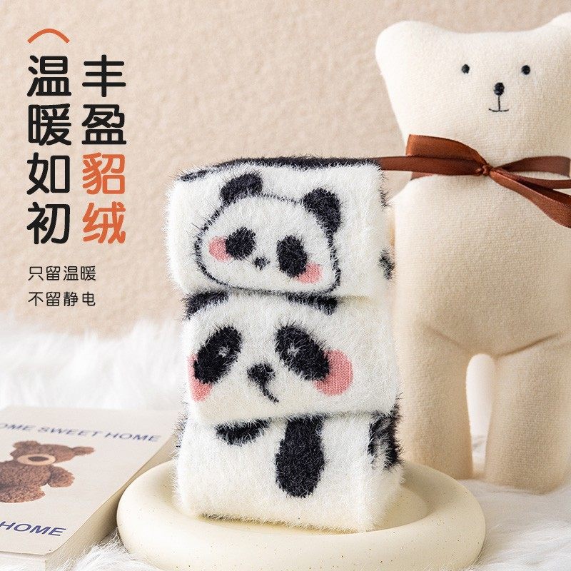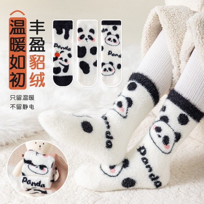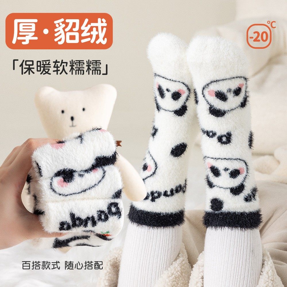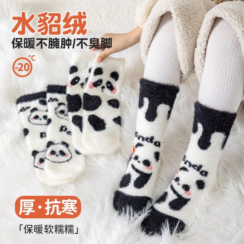 儿童水貂绒袜子秋冬季加绒加厚男女童中筒宝宝睡觉珊瑚绒睡眠保暖