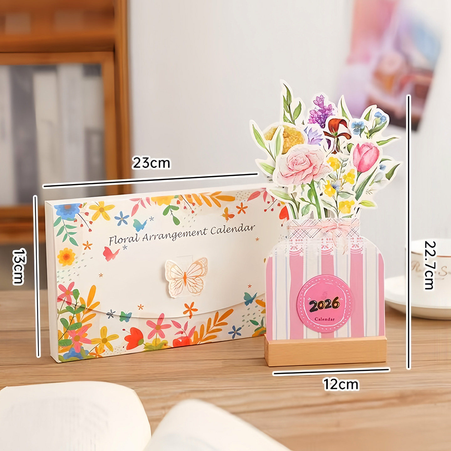 2026年新款马年台历立体花卉ins风小清新竖款简约卡片式桌面台历