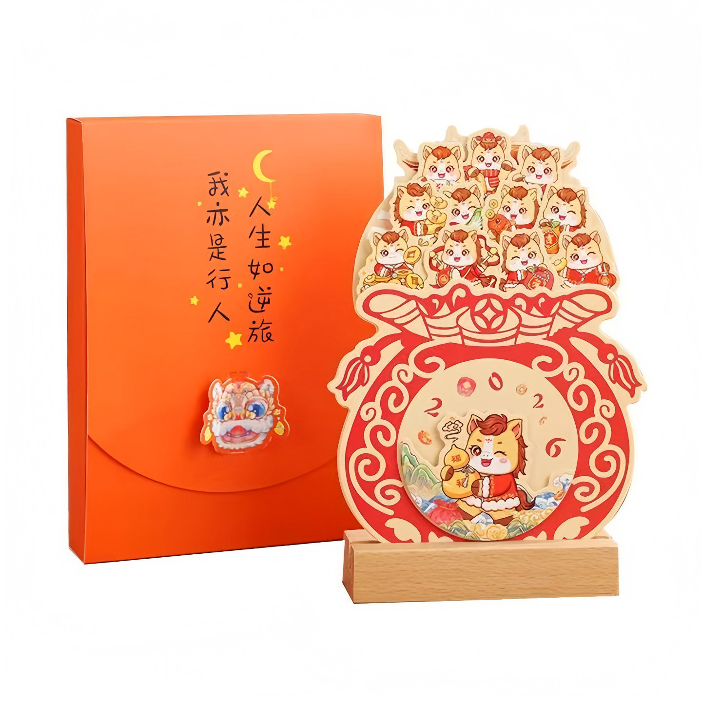 2026年台历礼盒装创意简约办公月历定制笔筒木质桌面摆件马年打卡日历计划本记事历新年礼品物流保险银行台历