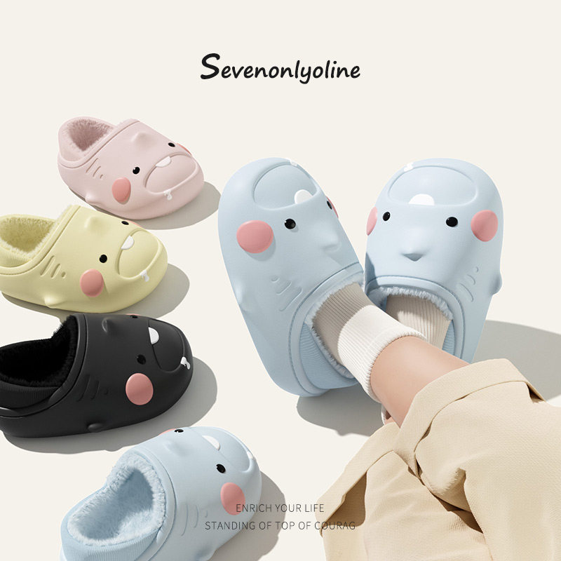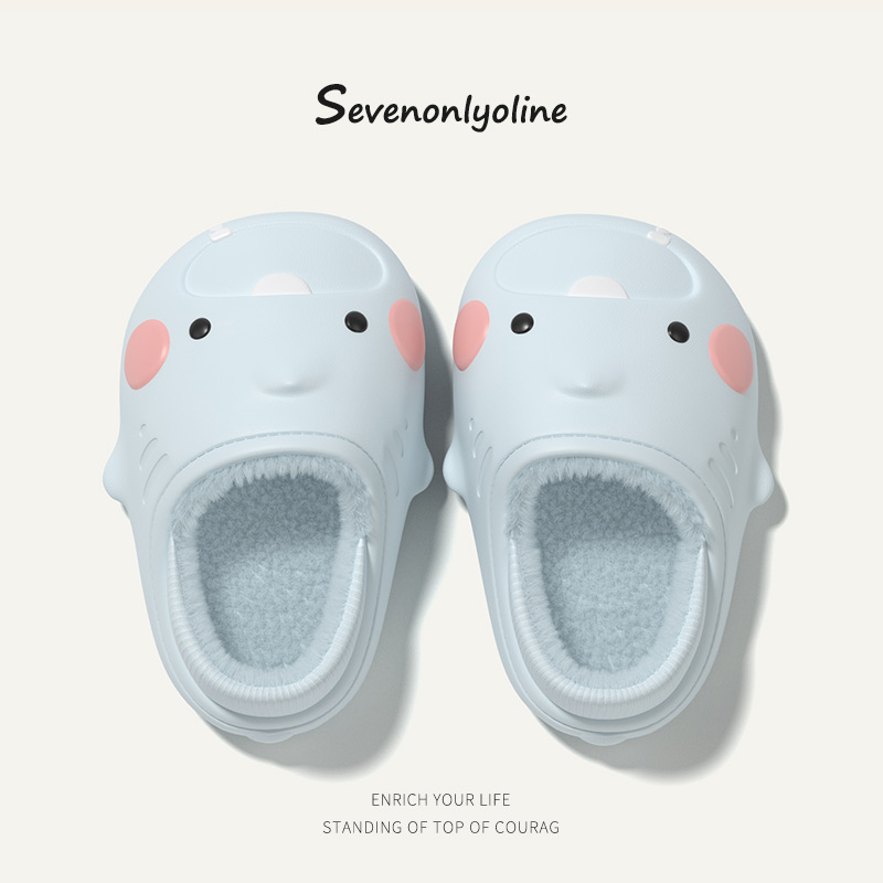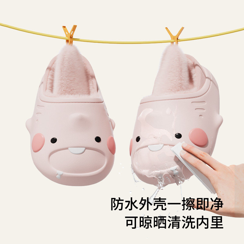 小鲨鱼防水儿童棉拖鞋包跟男童女孩冬季宝宝小童可爱保暖棉鞋防滑