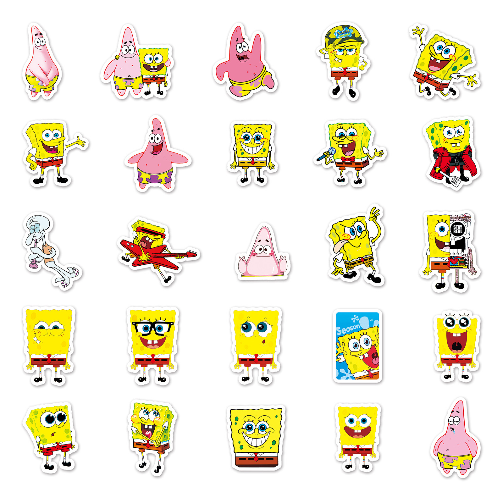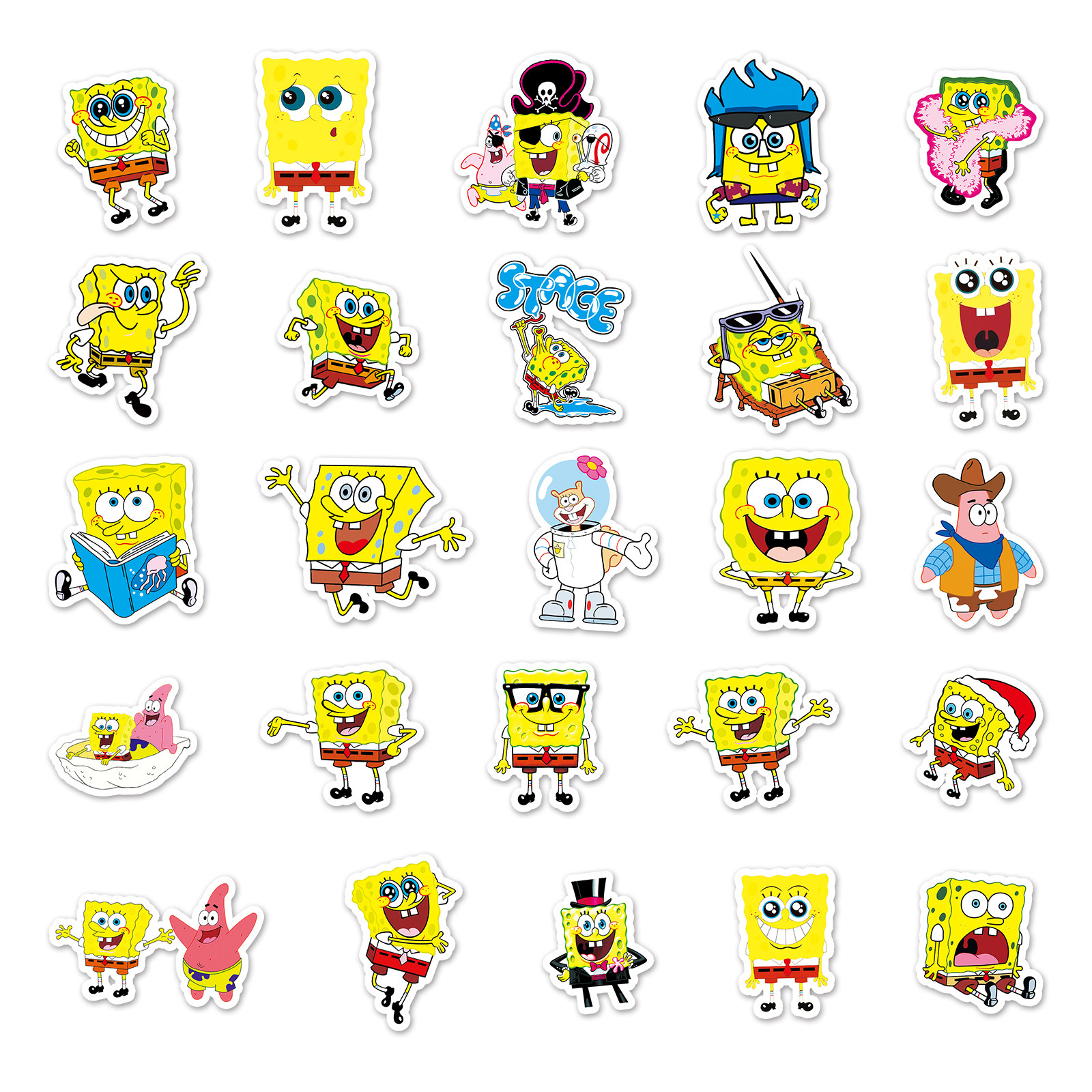 120张海绵宝宝贴纸手账手机公开吉他自行车电脑汽车旅行箱装饰卡通可爱派大星动画人物涂鸦个性创意防水贴画