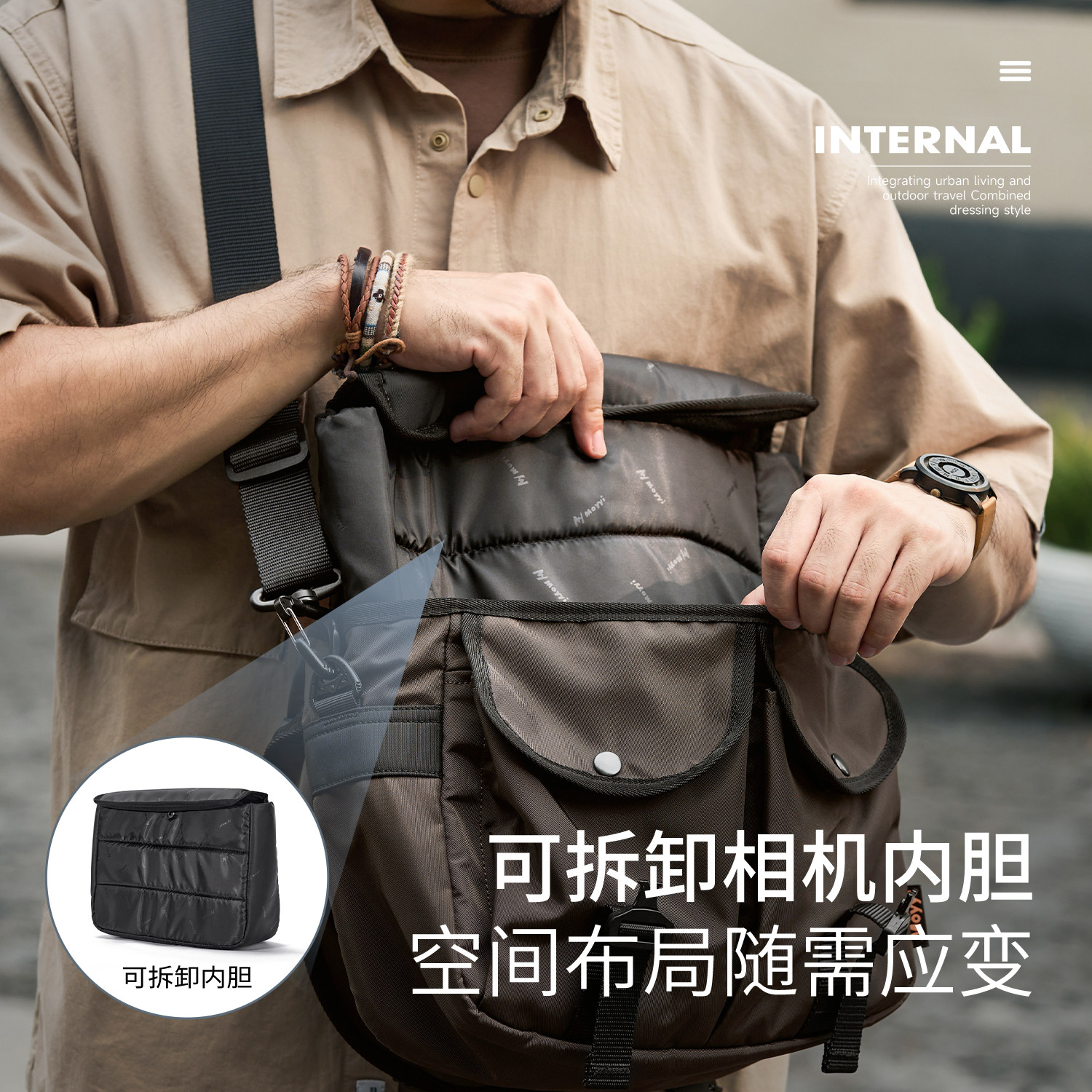 轻便相机包斜挎包男大容量微单反摄影包镜头保护套收纳包内胆可拆