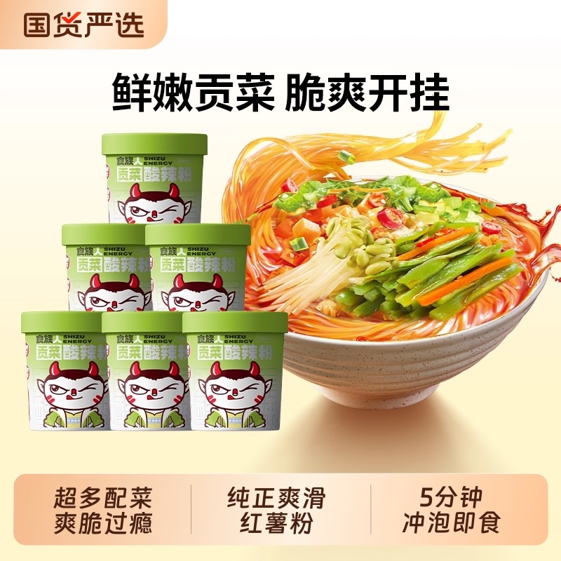 食族人经典贡菜酸辣粉新品重庆红薯粉米线免煮冲泡速食整箱桶装