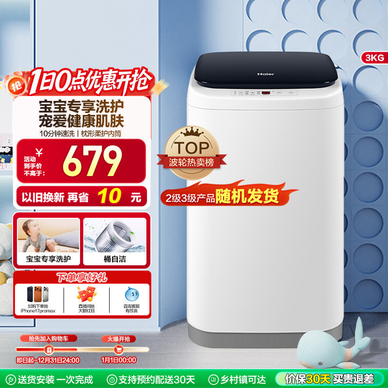 海尔3kg家用全自动儿童全自动迷你内衣裤小型宝宝婴儿洗衣机218