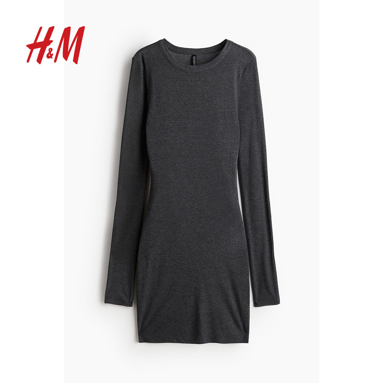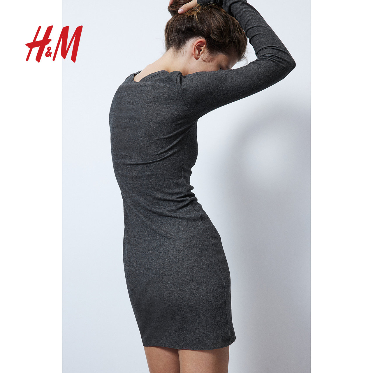 HM女装连衣裙冬季女士罗纹紧身简约休闲时尚连衣裙1242708