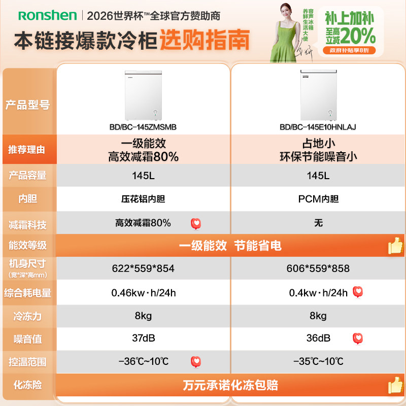 【新品】容声145升小冰柜家用小型冷冻两用冷柜一级节能囤货冰箱