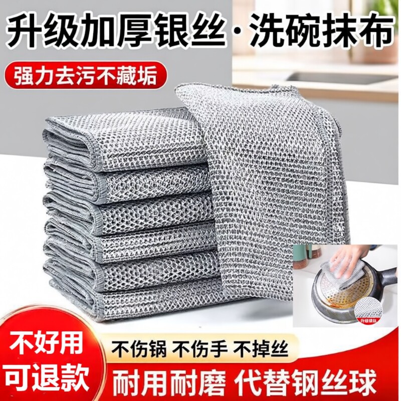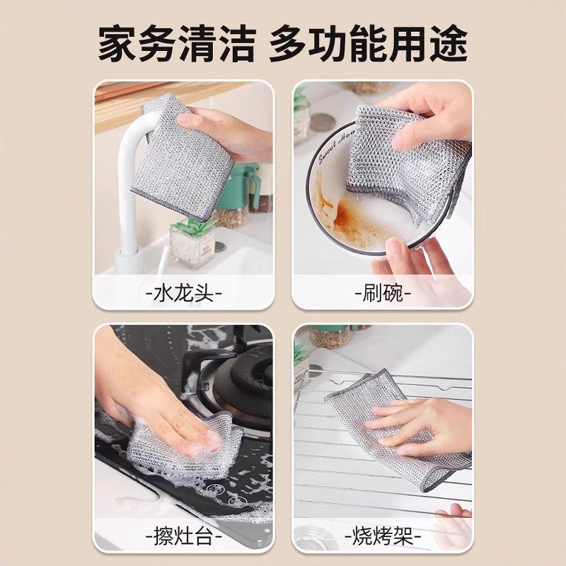 双面银丝洗碗布双层钢丝抹布不沾油厨房专用易清洗百洁布家用刷锅