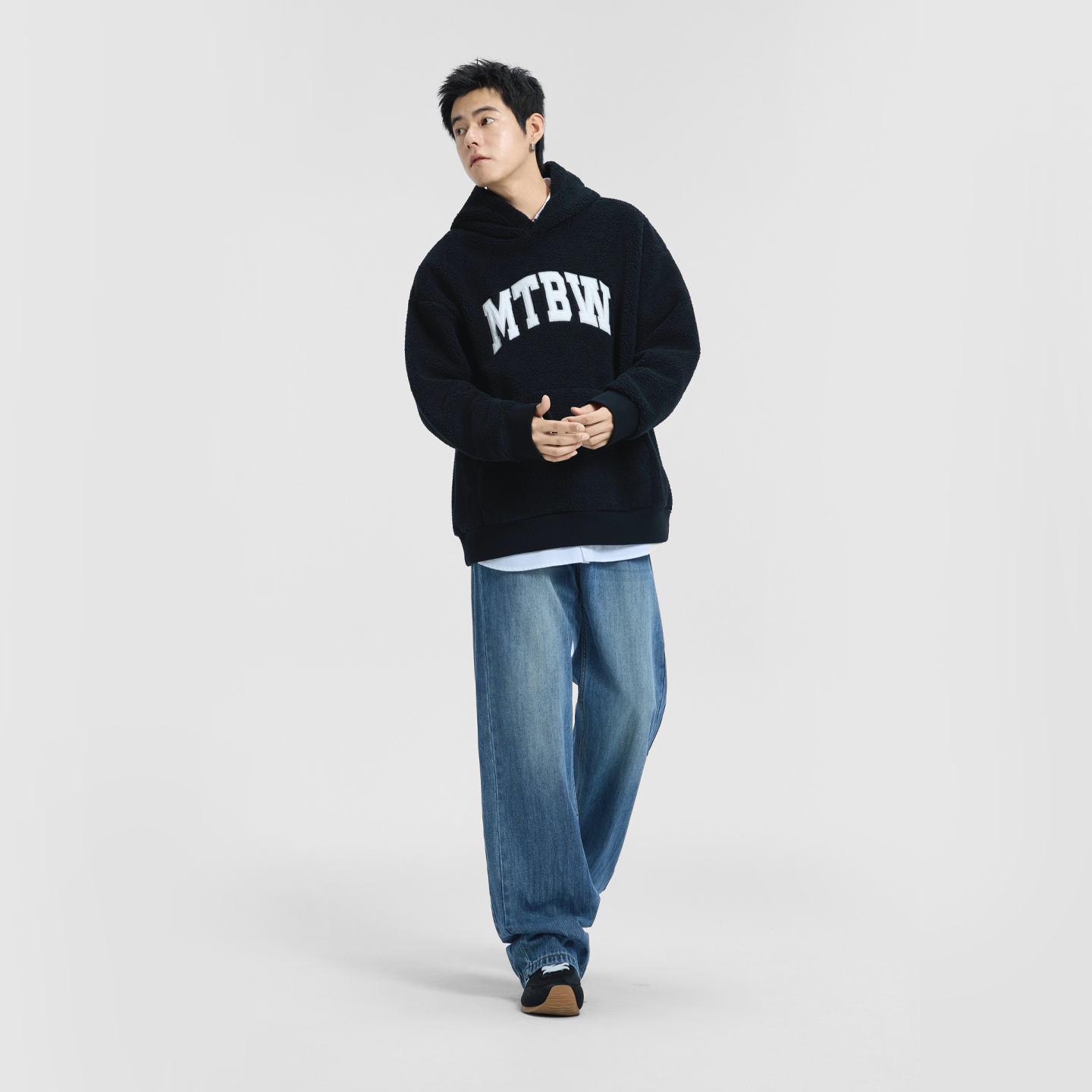 王安宇同款森马牛仔裤男做旧复古阔感弯刀裤宽松弧形裤2025冬新款