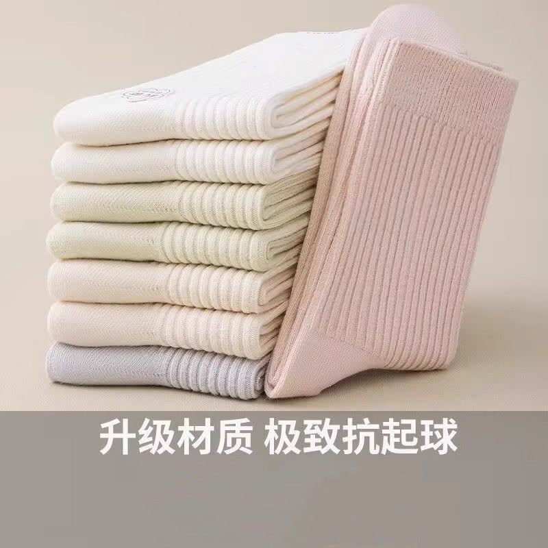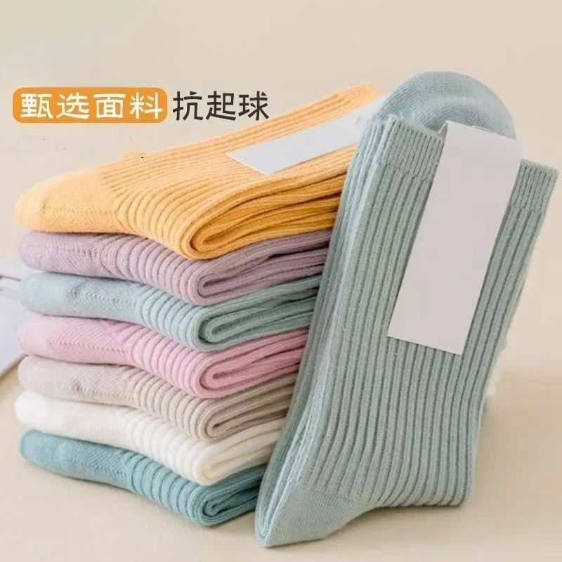 棉伙棉伴纯棉中筒袜抗起球男女纯色透气舒适耐穿日常百搭