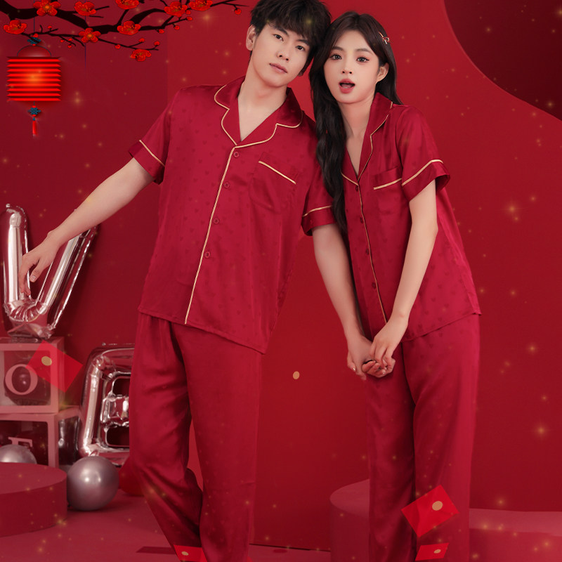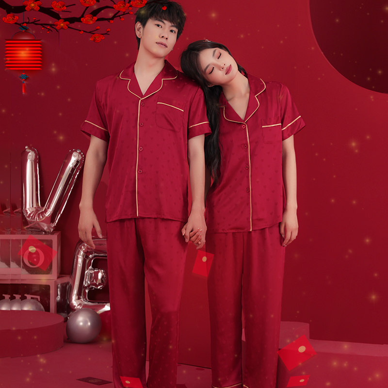 夏季睡衣冰丝本命年情侣套装女红色结婚新婚2025新款男高级感睡袍
