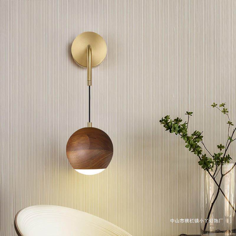 中式实木壁灯客厅灯仿古卧室灯床头灯胡桃木过道走灯廊墙壁灯具