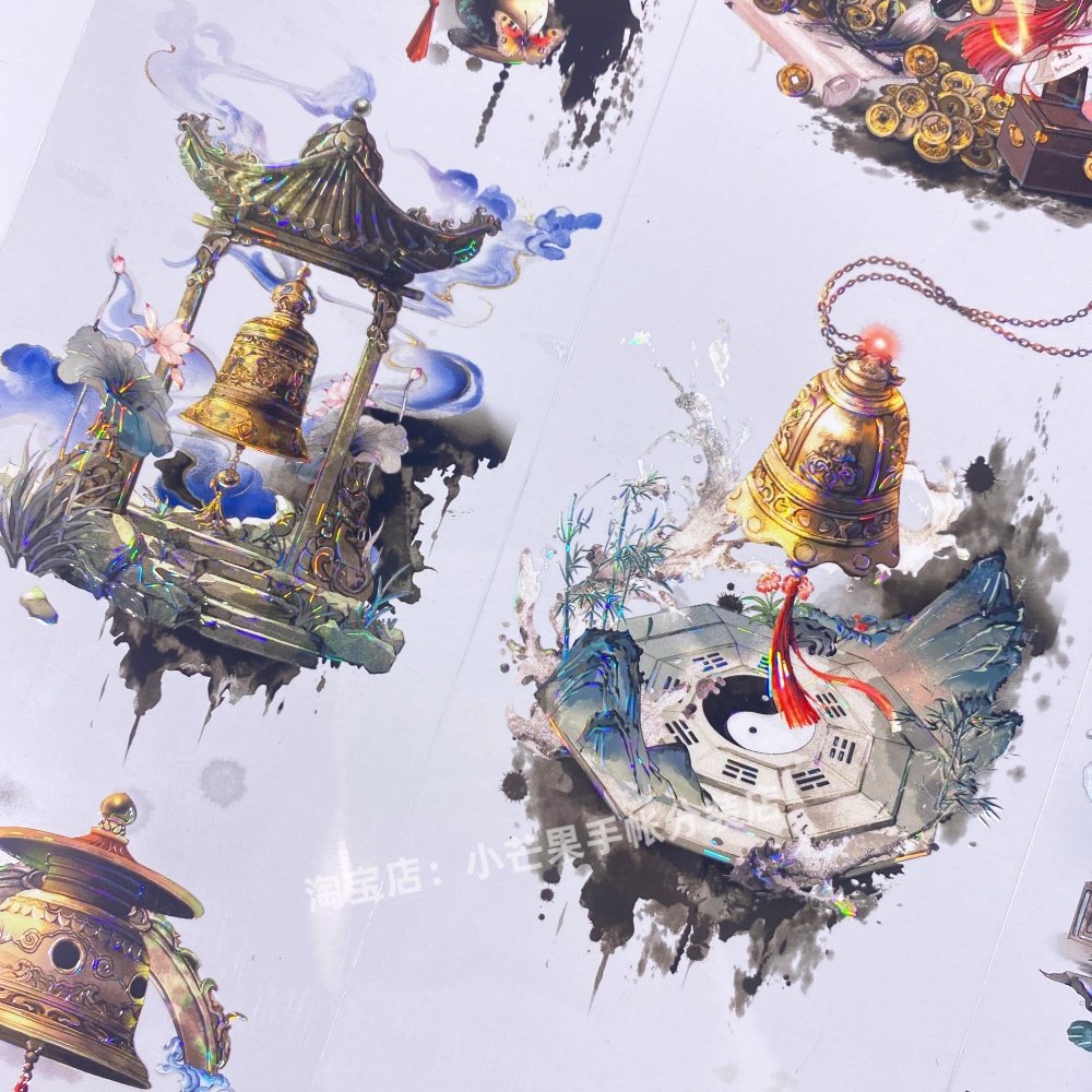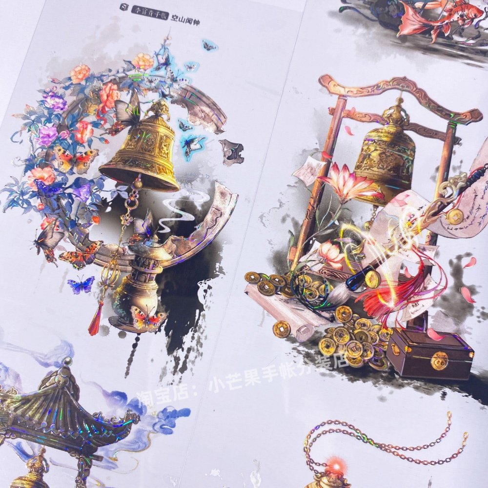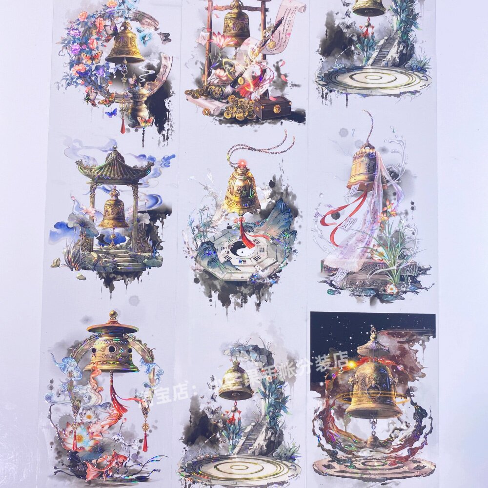 手帐分装胶带空山闻钟李富贵乐器宫殿花古风PET素材账手机壳贴纸