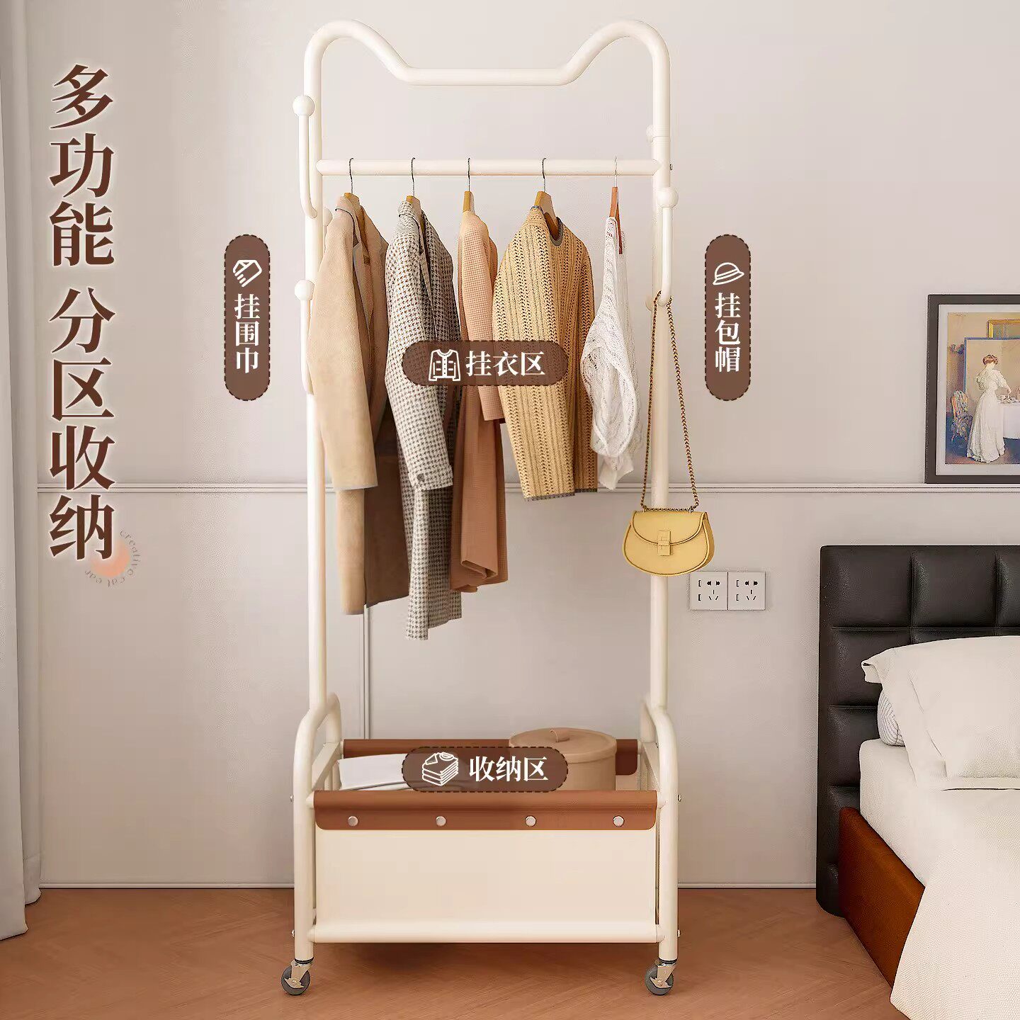轻奢卧室落地晾衣架挂衣架家用可移动衣架收纳置物架子客厅衣帽架