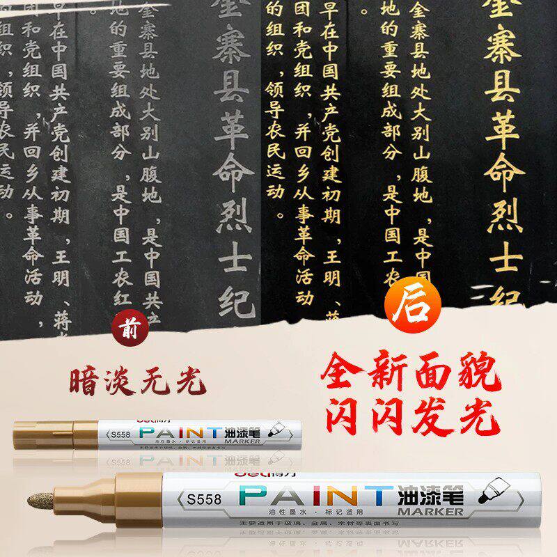 得力清明节碑文补漆笔墓碑描字笔描碑笔石碑填描字笔描红笔石碑油漆笔防水不掉色碑文红漆补漆笔扫墓墓碑上色