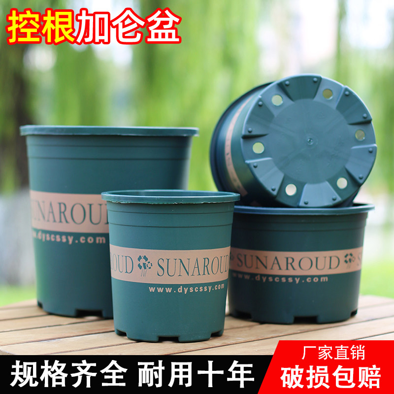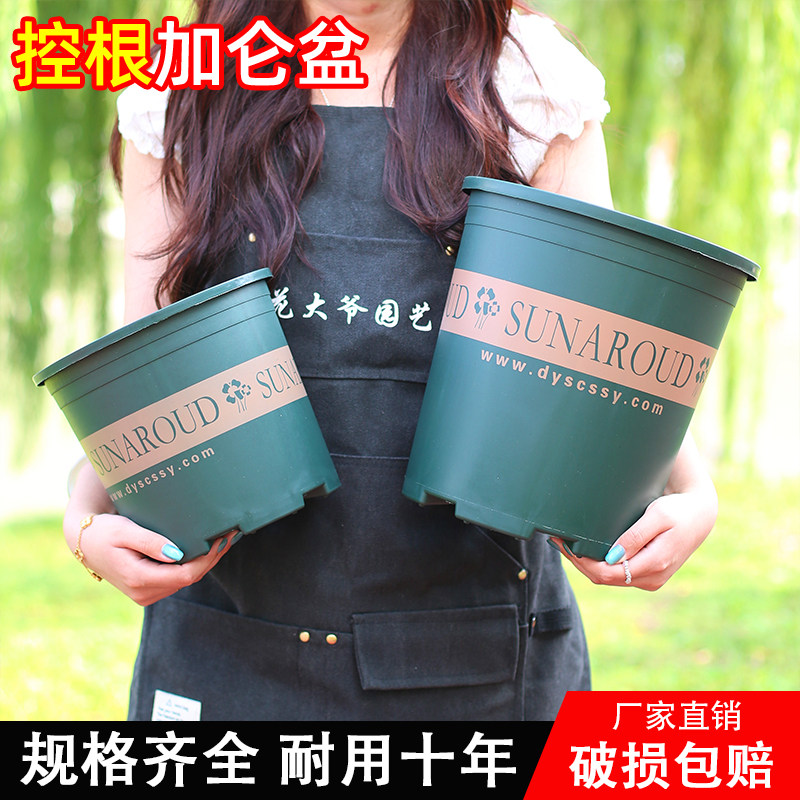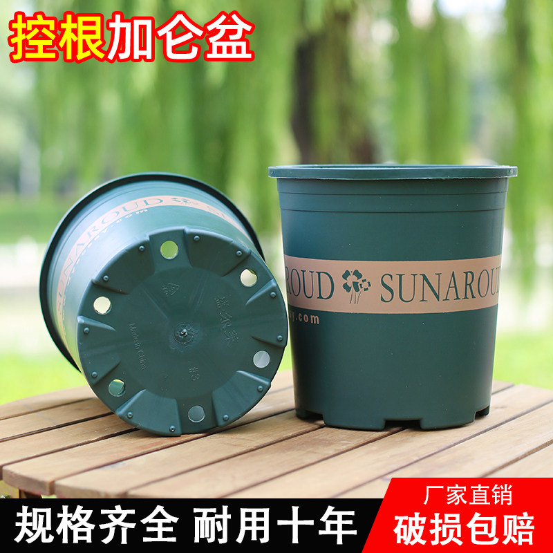 简约圆形田园风加厚塑料花盆控根透气绿植多肉花卉加仑盆带托盘