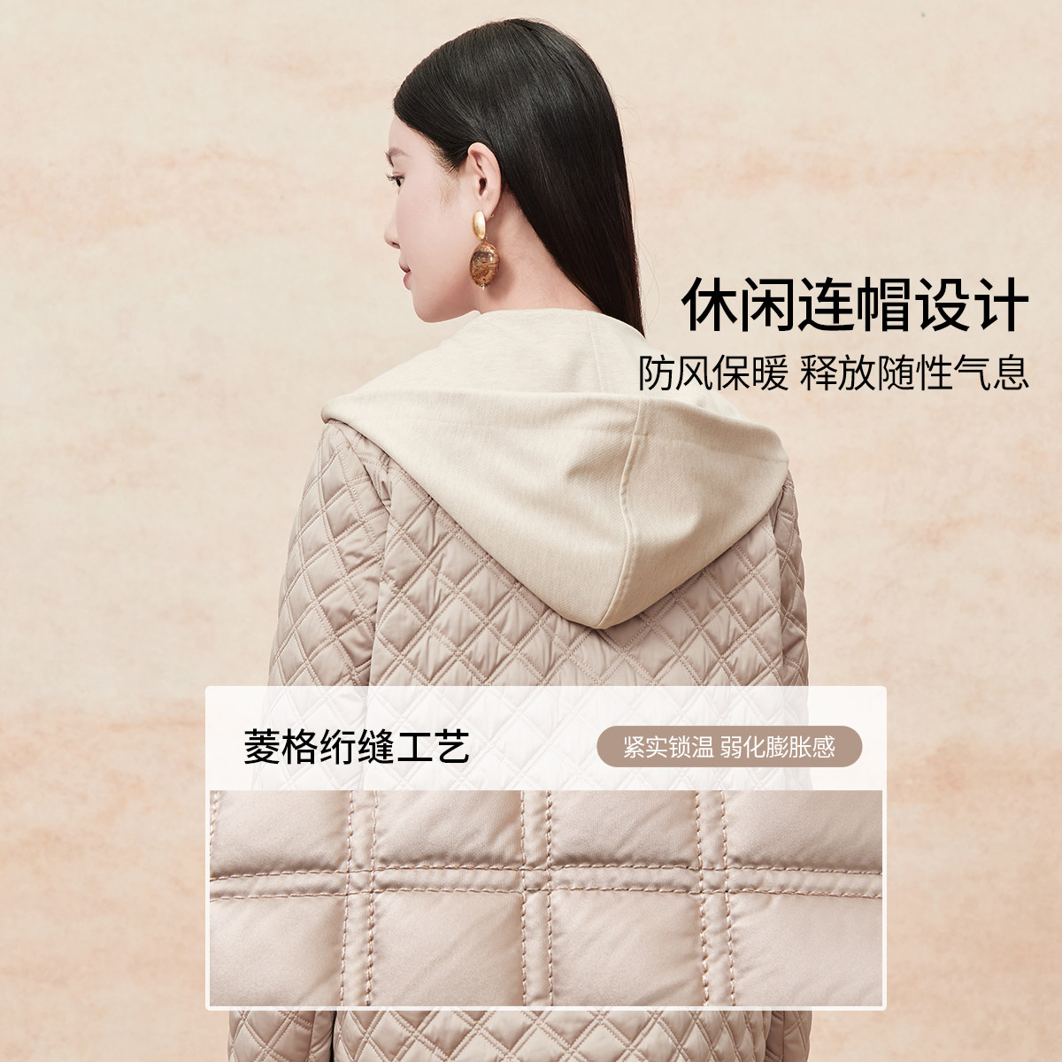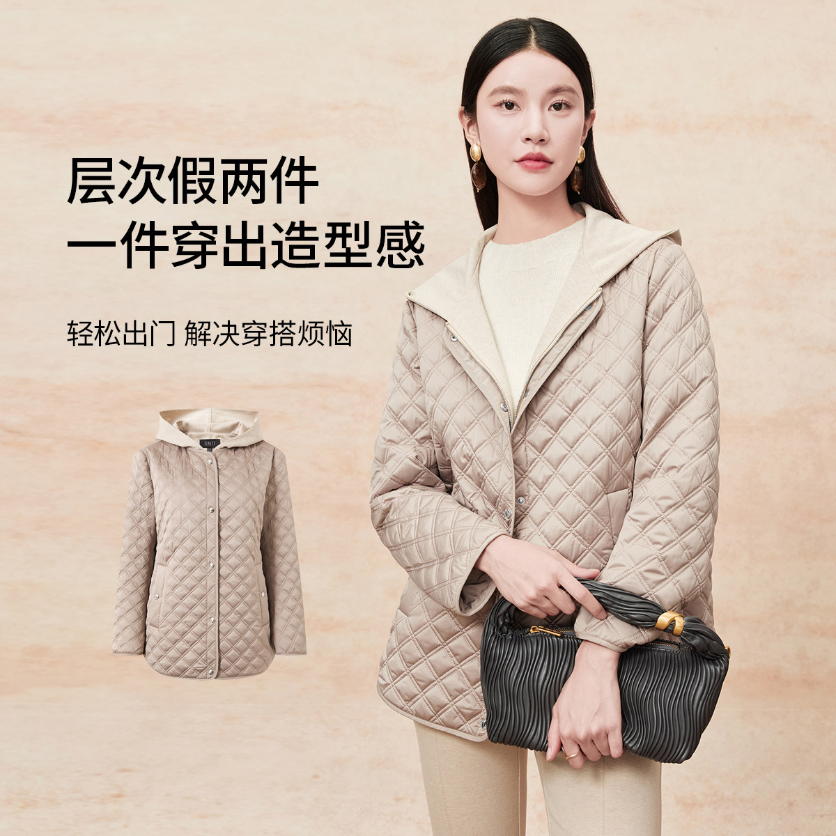 FINITY菲妮迪连帽棉衣棉服2025年冬季新款简约菱格设计百搭外套女