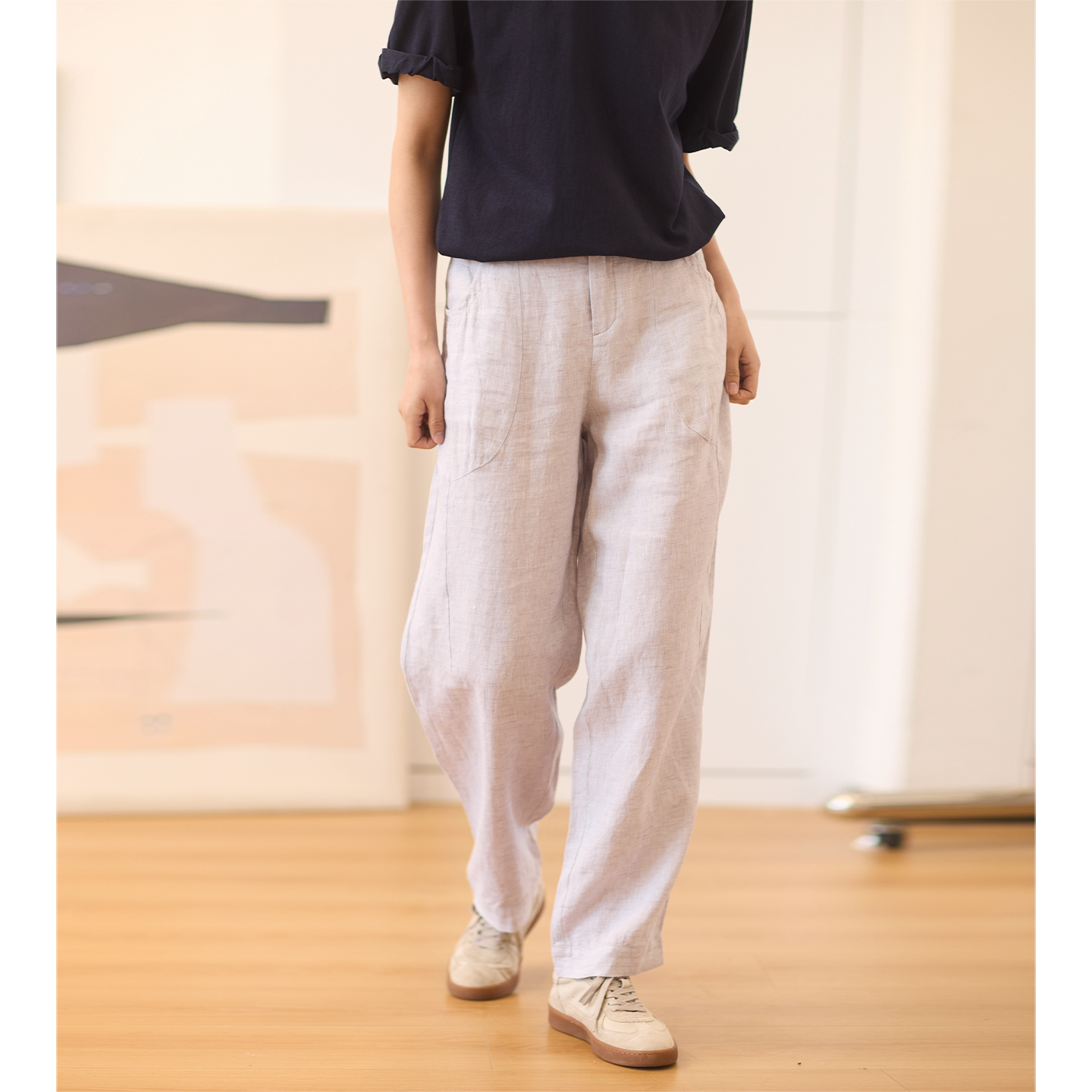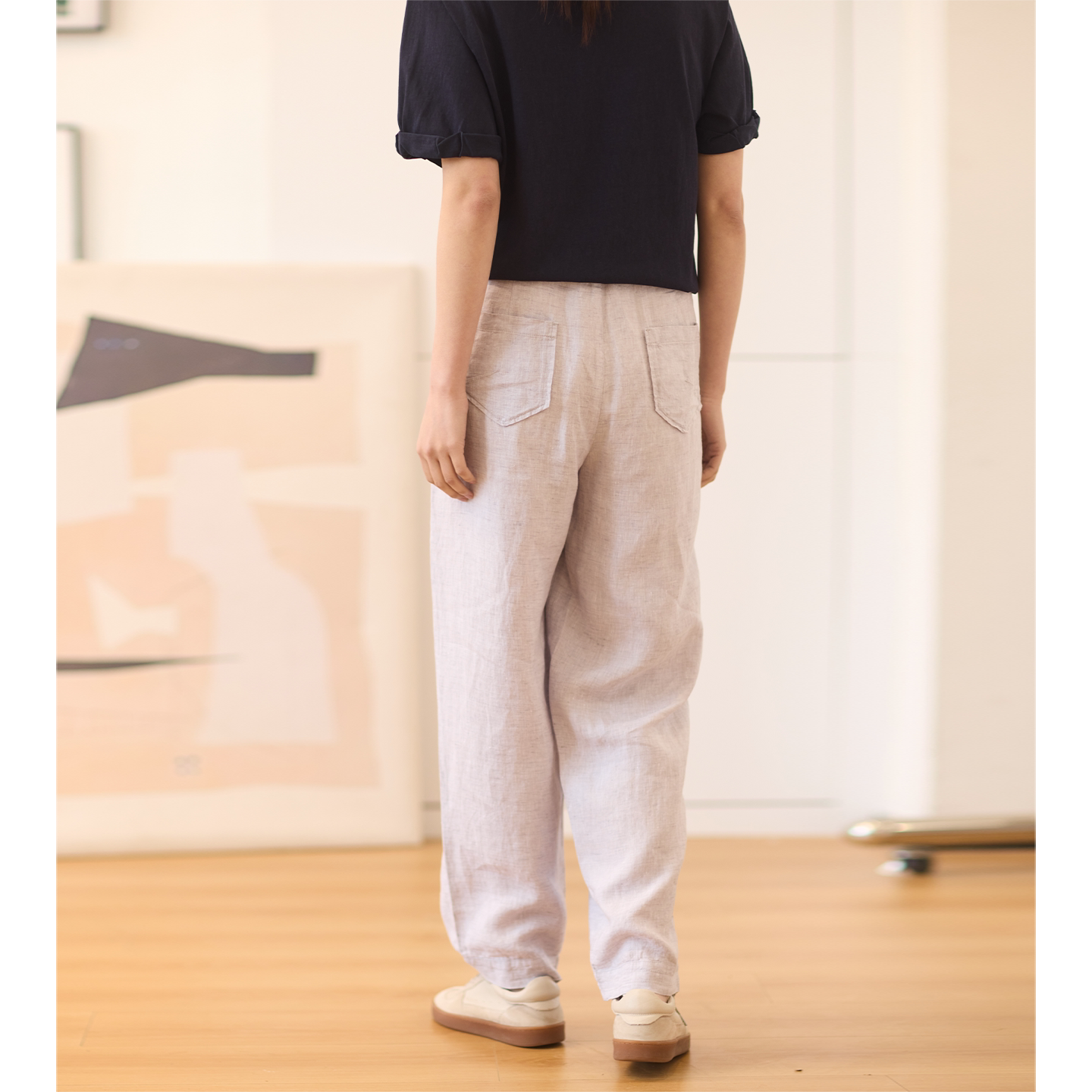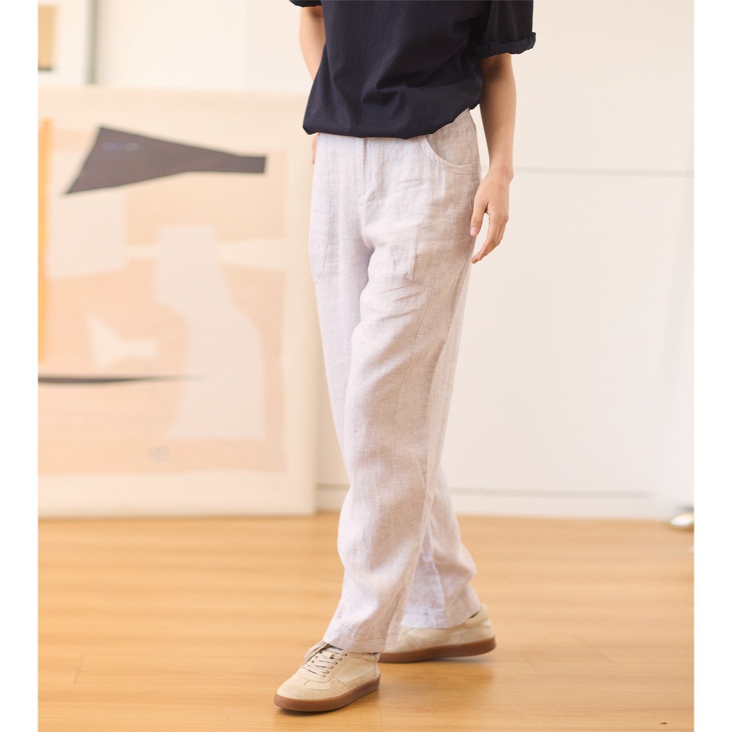 无色无味亚麻直筒女裤2025新款中年薄款捏褶休闲裤垂感长裤子