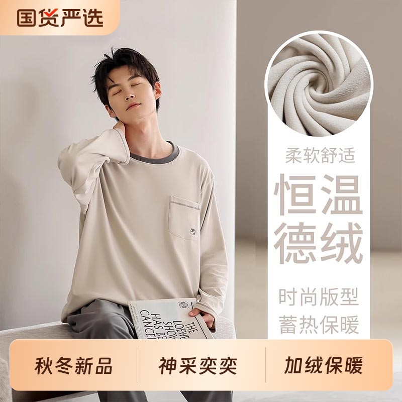 男士睡衣男款薄绒暖套装2025新款秋冬季磨毛绒德家居服德绒加绒