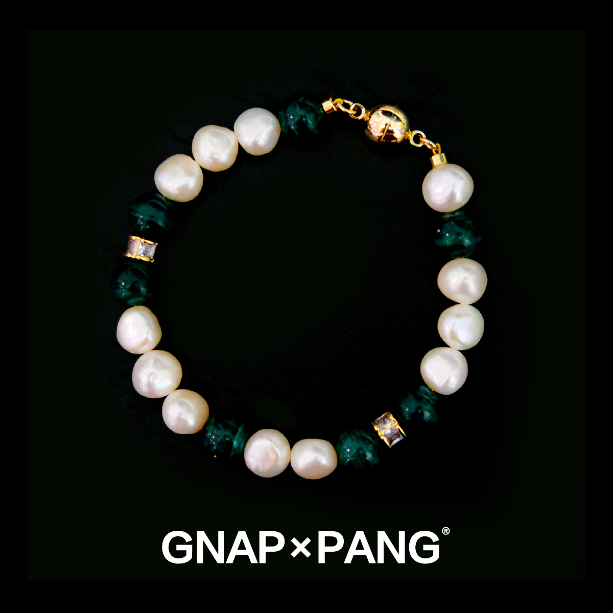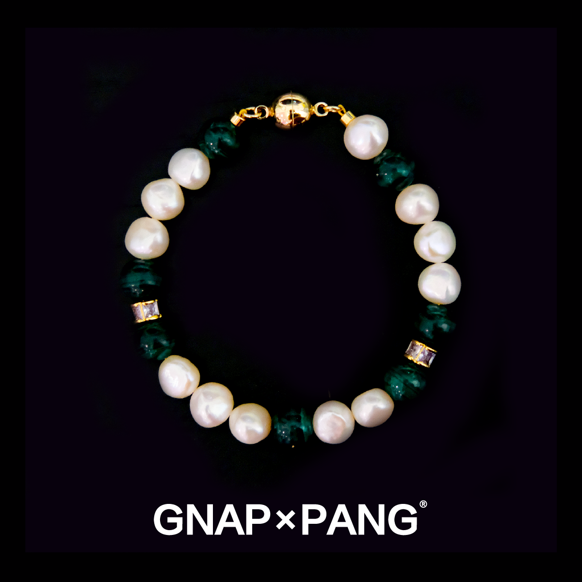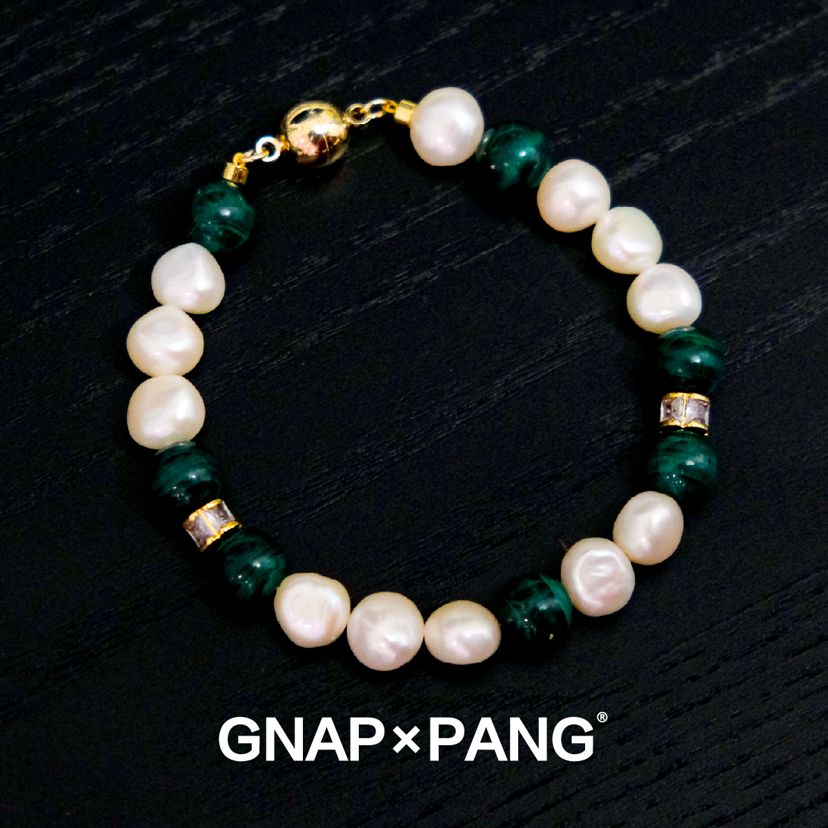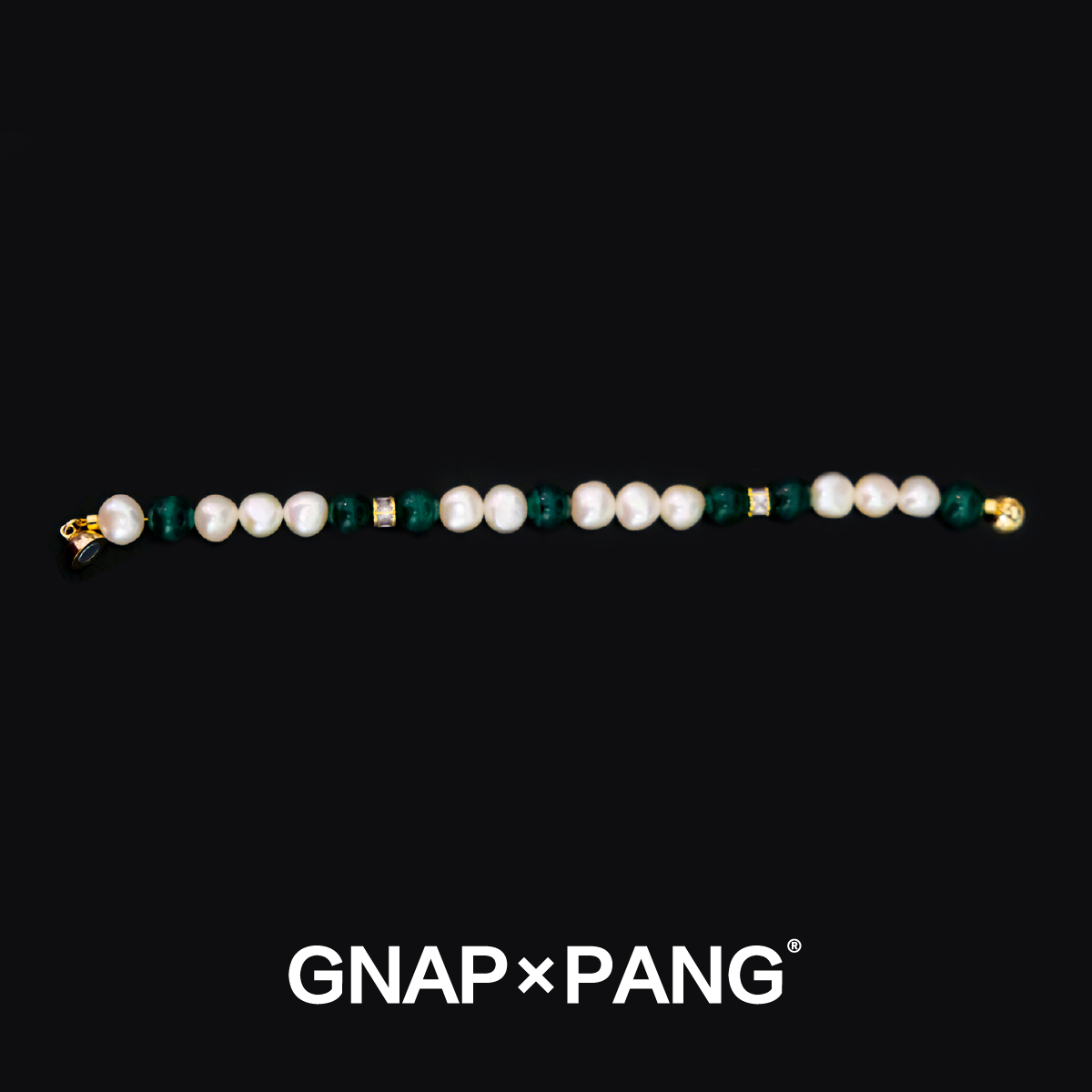 GNAPxPANG JEWELRY宿雾麒麟尾天然矿孔雀石淡水珍珠手链INS嘻哈男