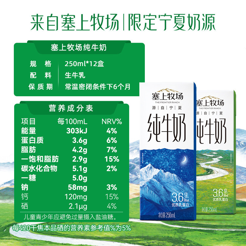 塞上牧场纯牛奶整箱250ml*12盒宁夏纯牛奶礼盒装夏进牛奶