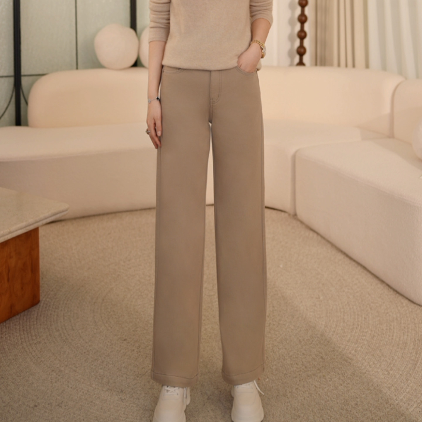 王家有鱼秋冬新款加绒阔腿裤2025百搭修身显瘦宽松直筒牛仔裤子女