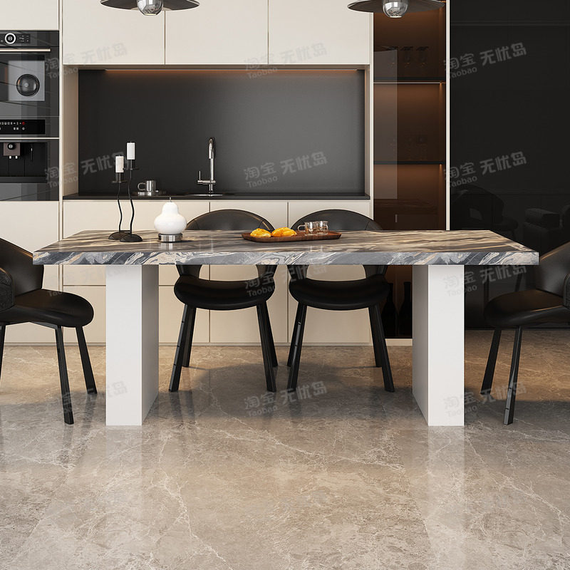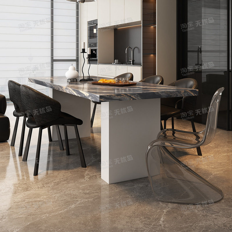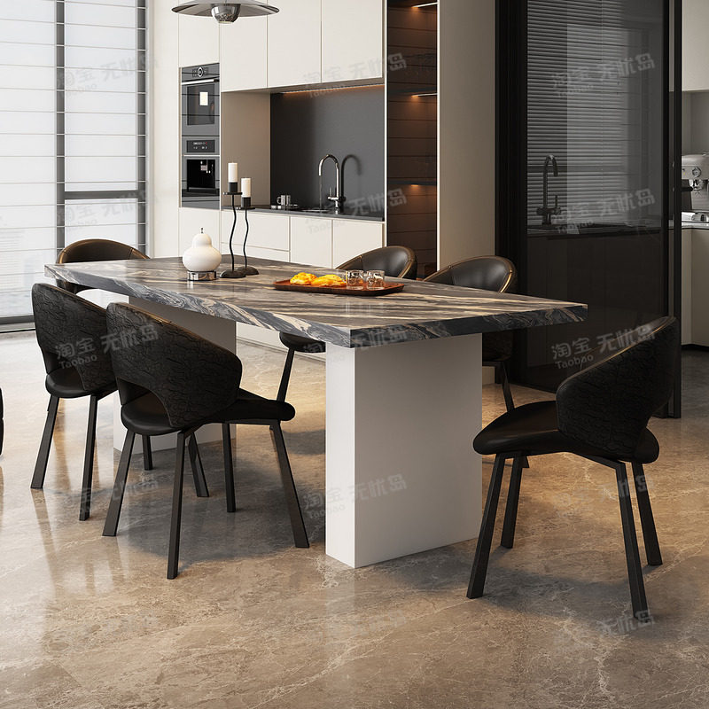 全岩板餐桌设计师轻奢高级感小户型长方形2026新款客厅一桌四椅