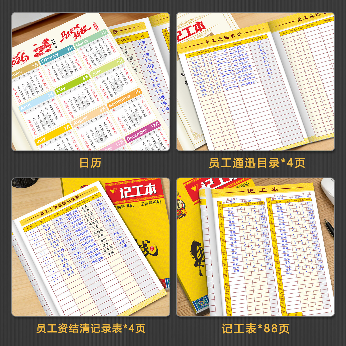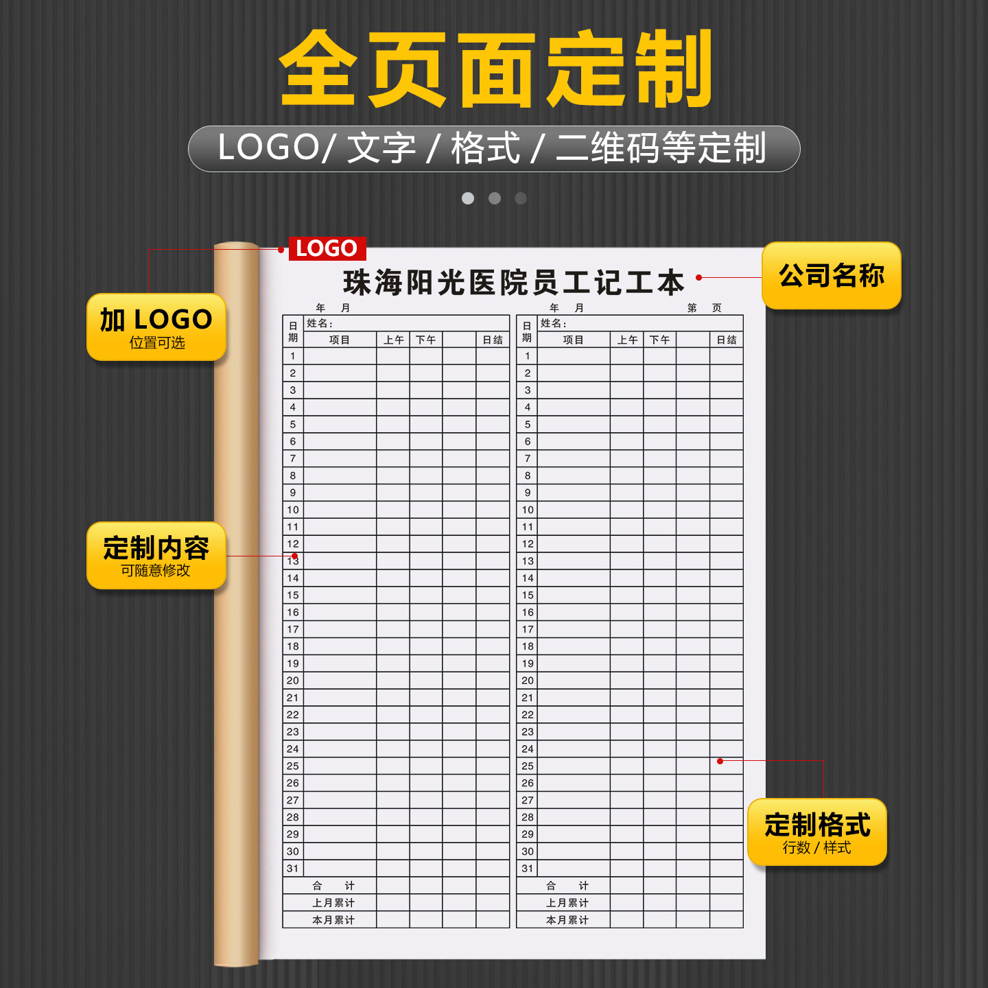 【医院记工本】新款个人记工簿31天带备注考勤表钟点工上班工时本