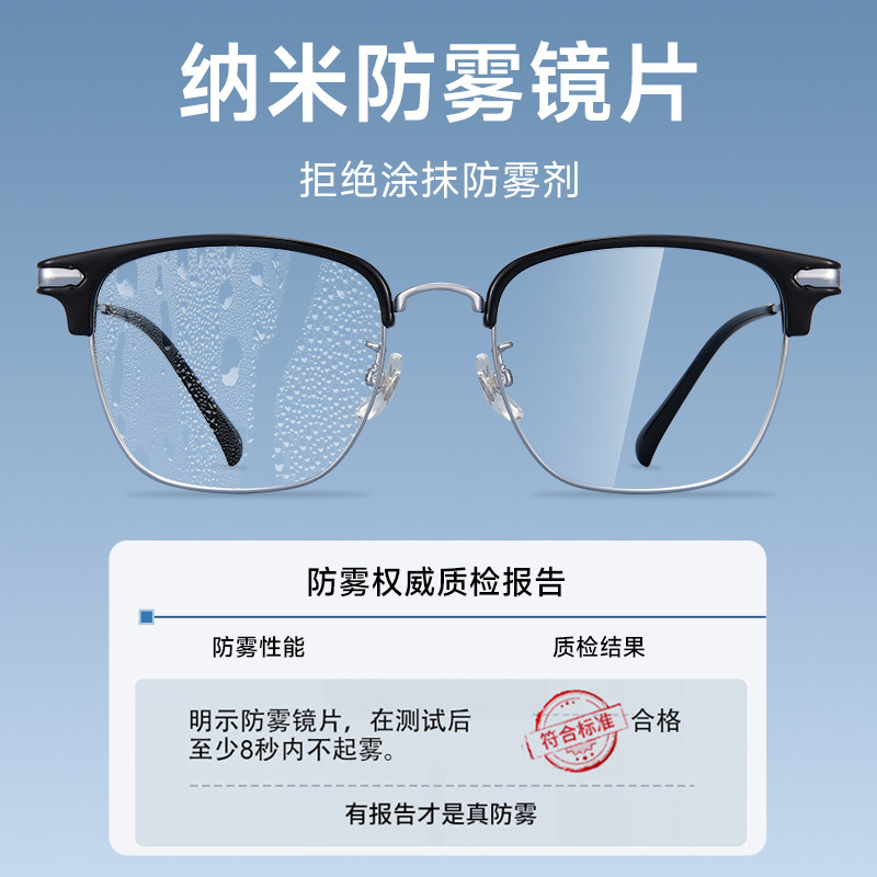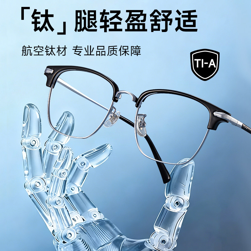 蔡司镜片斯文半框近视眼镜男变色防蓝光可配度数超轻眼镜架969078