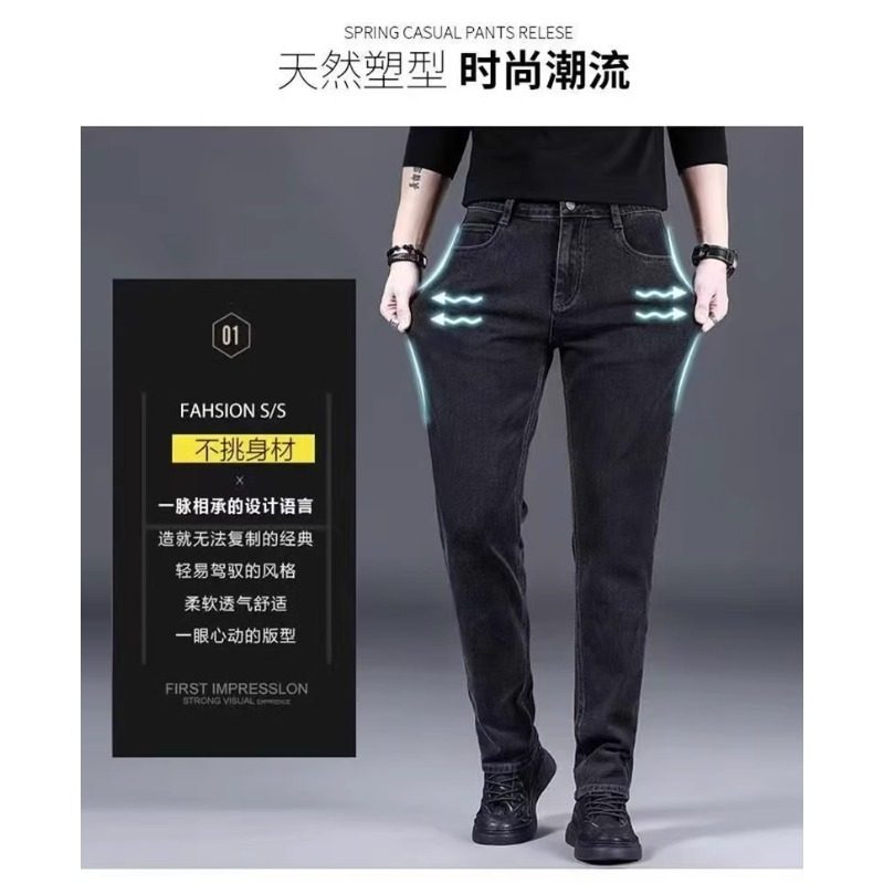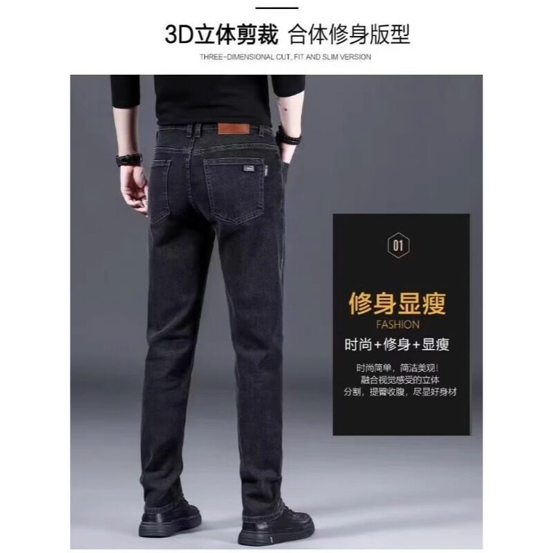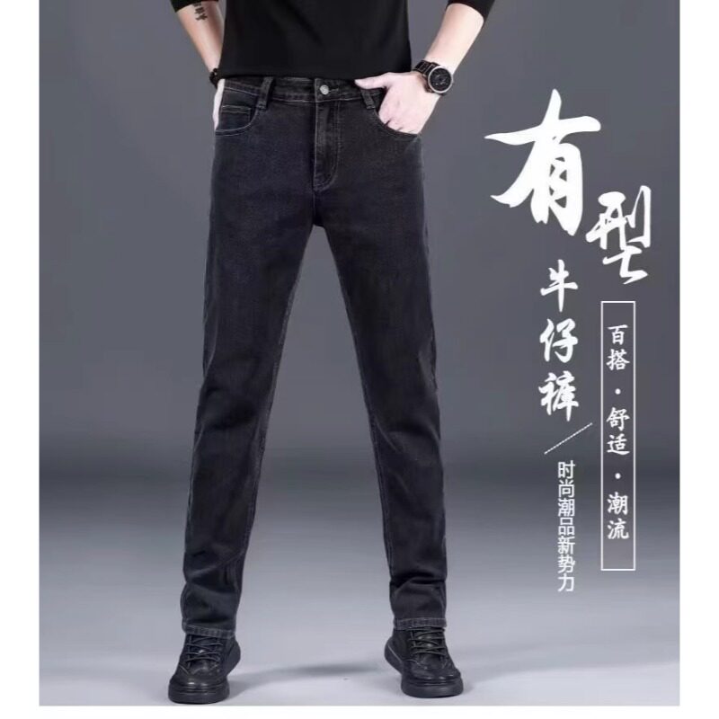 冬季男士牛仔裤加绒加厚中老年春季宽松直筒弹力裤休闲商务保暖裤