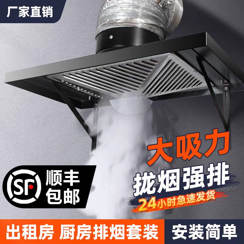 简易不锈钢烟机排气扇厨房家用抽风机强力静音大吸力抽油烟机小型