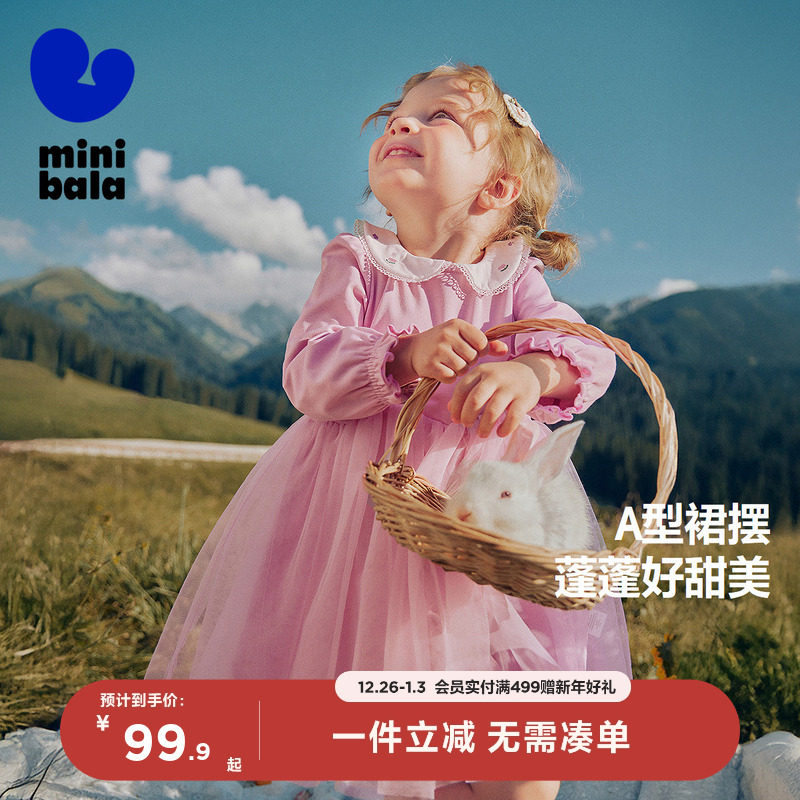 巴拉巴拉宝宝连衣裙蓬蓬网纱裙A字裙女童装2025秋季新款裙子儿童