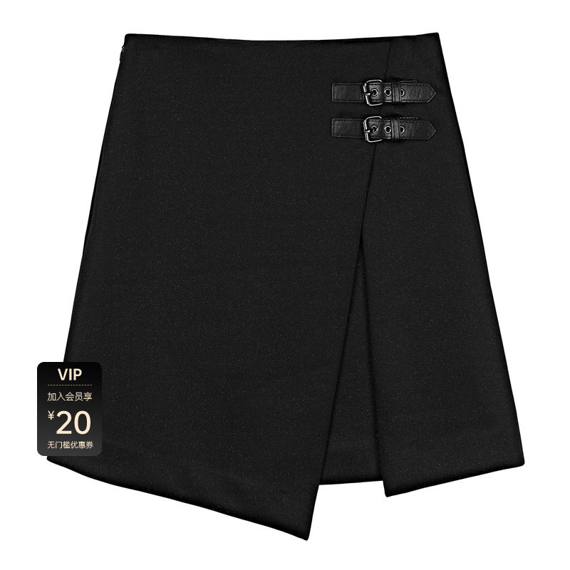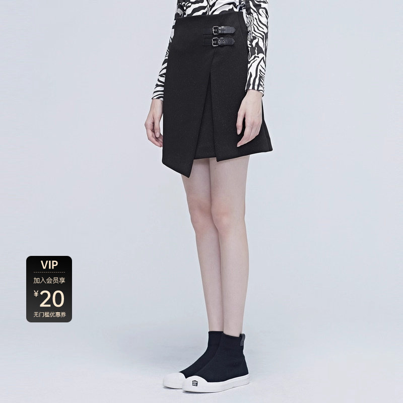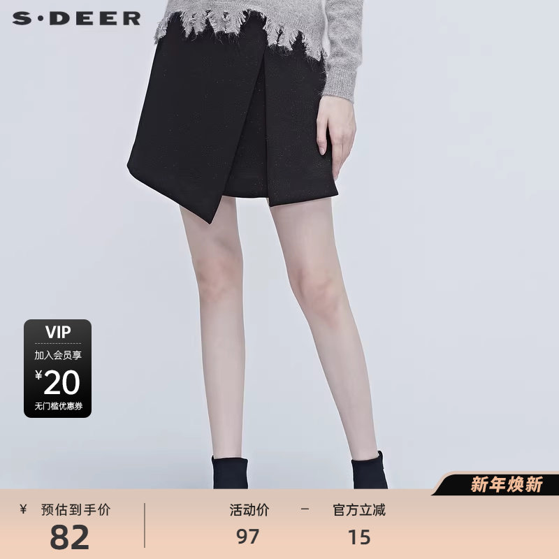 【秒杀】sdeer圣迪奥秋搭片拼接短裙黑色裙子秋半身裙S20381309