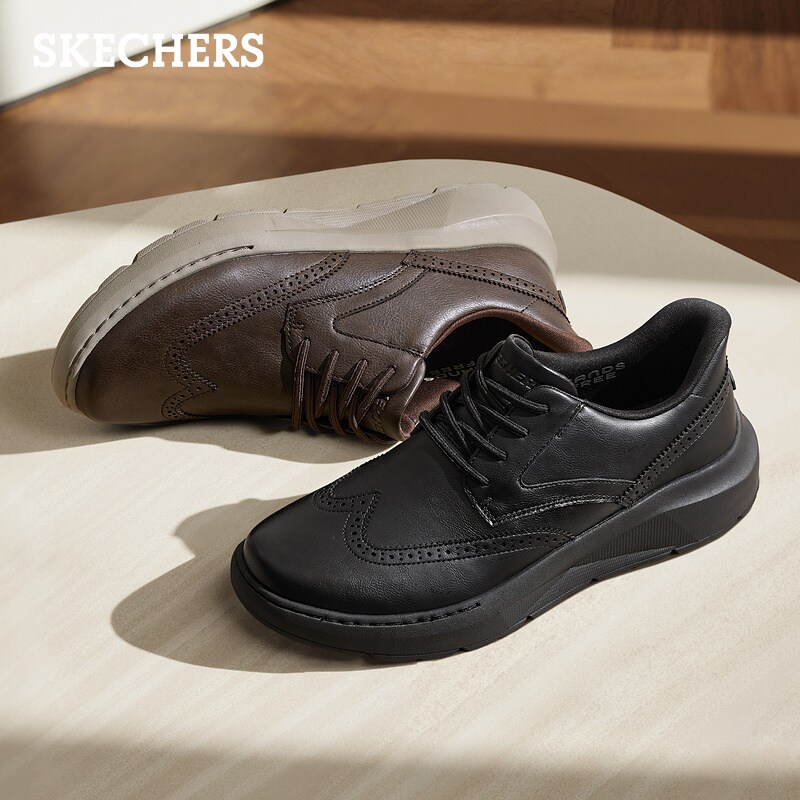 斯凯奇秋冬新款男子舒适休闲皮鞋商务鞋通勤鞋德比鞋软底上班板鞋