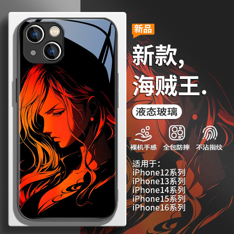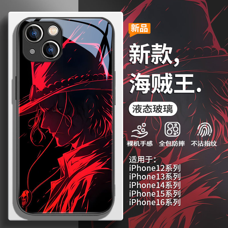 适用新款苹果16promax海贼王手机壳iPhone15plus动漫14pro个性炫酷13/12mini小众11高级感xs创意7/8p玻璃xr套