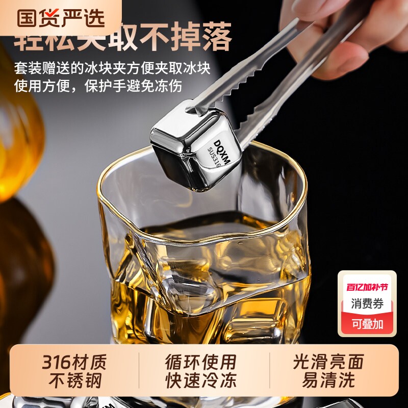 316不锈钢冰块食品级可循环使用金属威士忌冰酒石冰粒冰镇神器