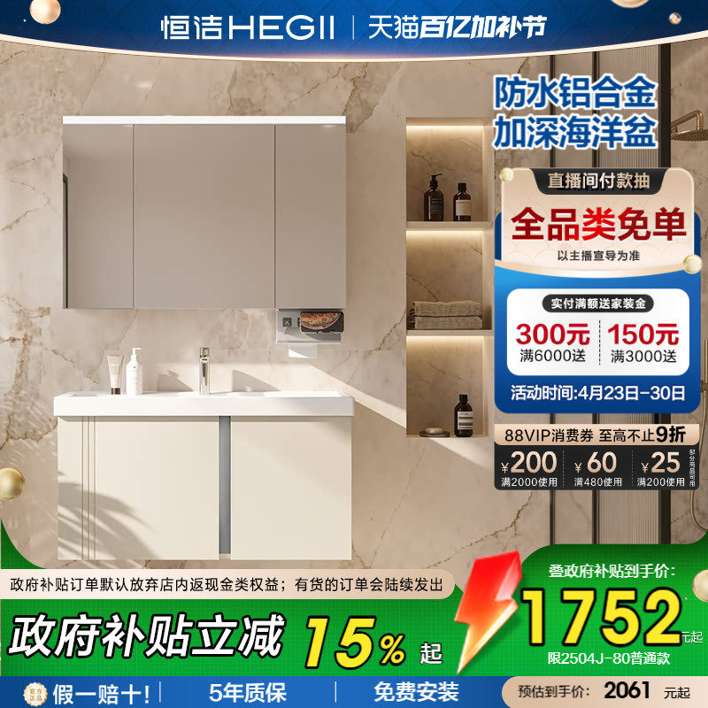 恒洁卫浴蜂窝铝浴室柜组合陶瓷一体盆卫生间洗手盆柜储物洗漱台