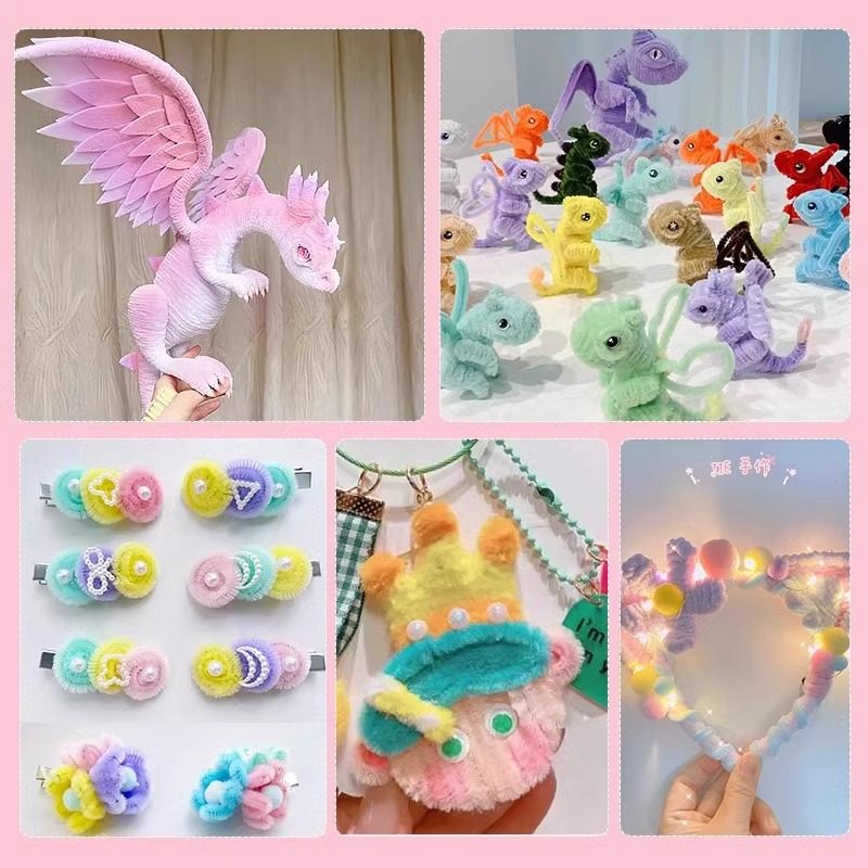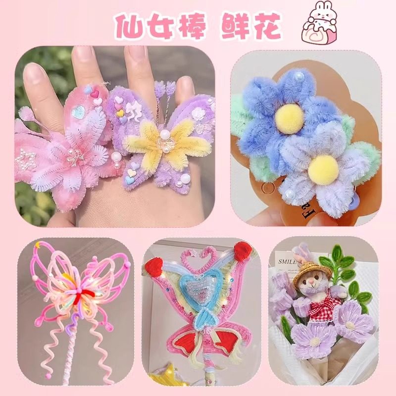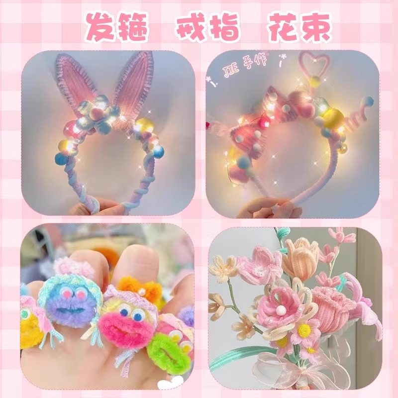 加密扭扭棒花束手工diy材料幼儿园发夹马卡龙彩色毛根妞妞棒套装手捧花编织工具儿童发箍发簪礼物豪华花蕊