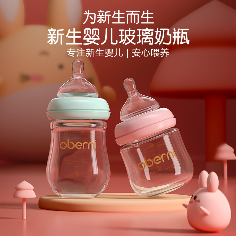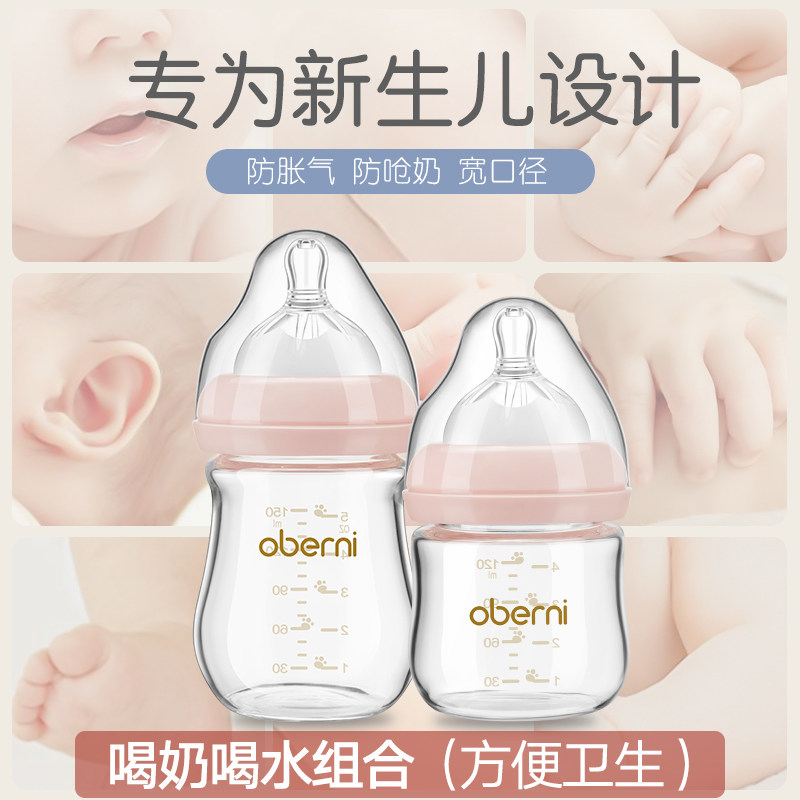 欧贝妮新生婴儿奶瓶玻璃喝水防胀气套装初生宝宝专用0一3到6个月