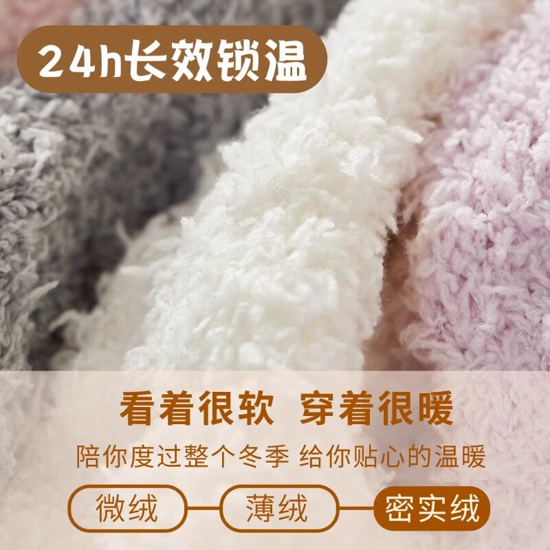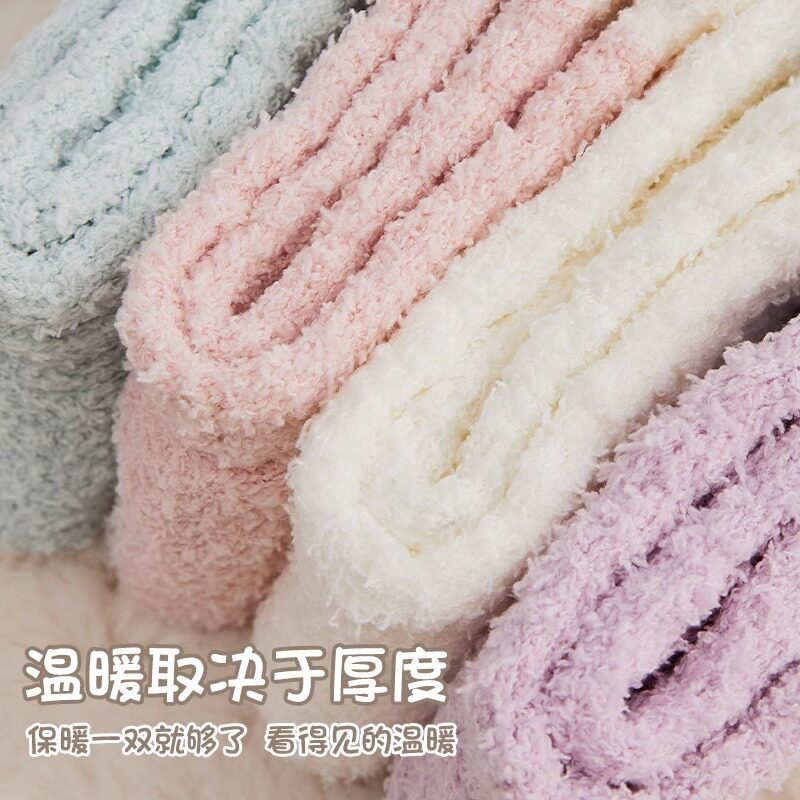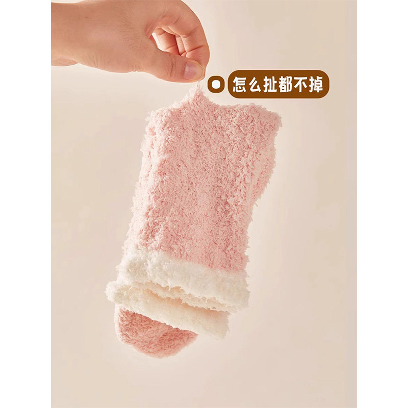 珊瑚绒袜子女棉袜加厚睡眠保暖毛毛冬季毛绒地板袜加绒不勒脚产后