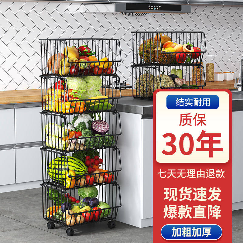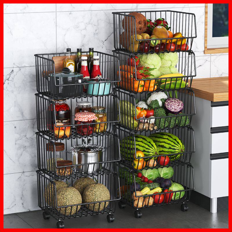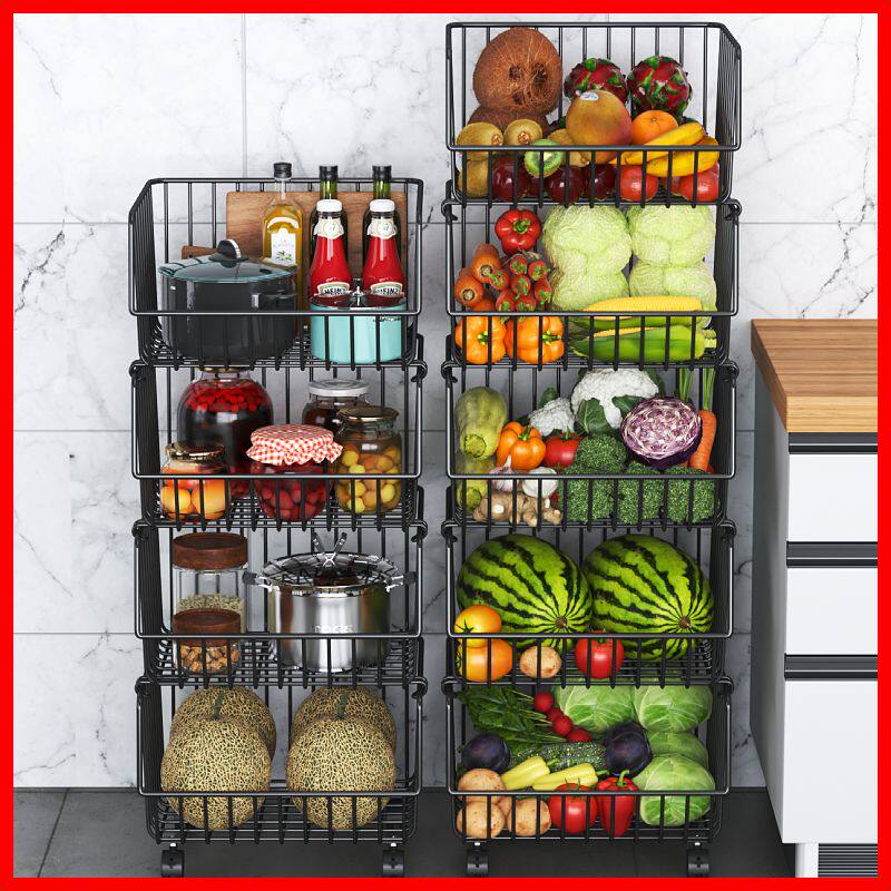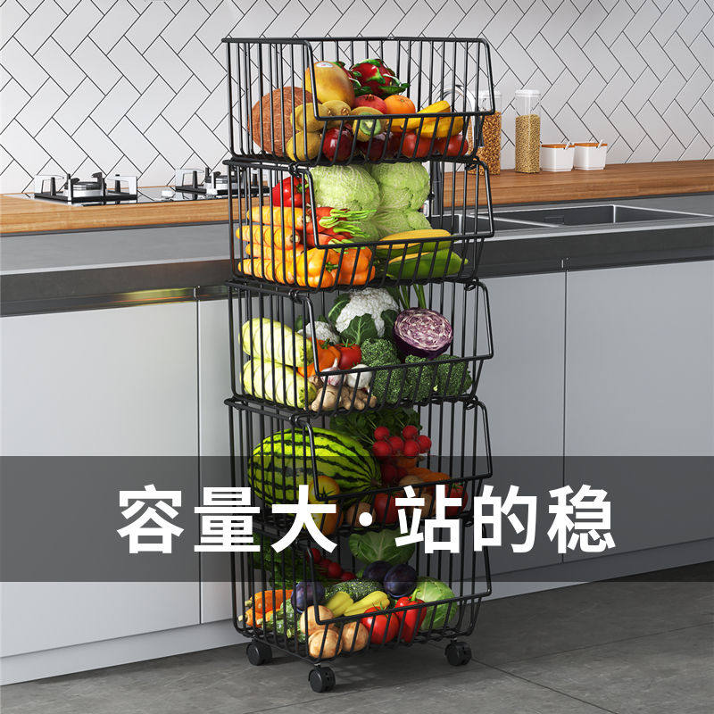 厨房置物架落地多层蔬菜水果零食架收纳菜筐多功能推车式架子移动