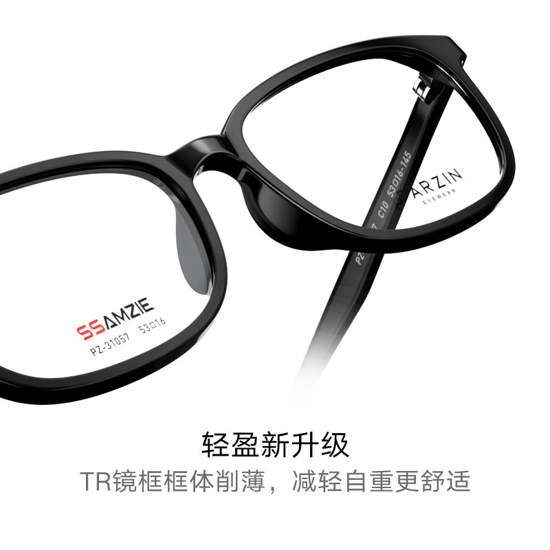 帕森近视定制光学镜女素颜修颜可配度数TR黑框显瘦眼镜架男31057
