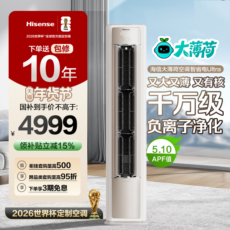 海信大薄荷智省电Ultra大3匹一级变频客厅立式柜机世界杯定制空调