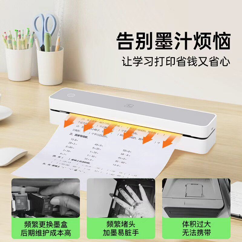 启锐A4错题打印机小初高中专用错题免抄神器家用打印机无墨热敏便携式宿舍错题整理学生作业试卷可连手机蓝牙
