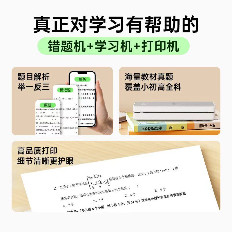 【初中生专用】作业帮喵喵机P3S错题机超清宽幅扫描得迷你小型家用学习便携式打印机力整理错题免抄神器