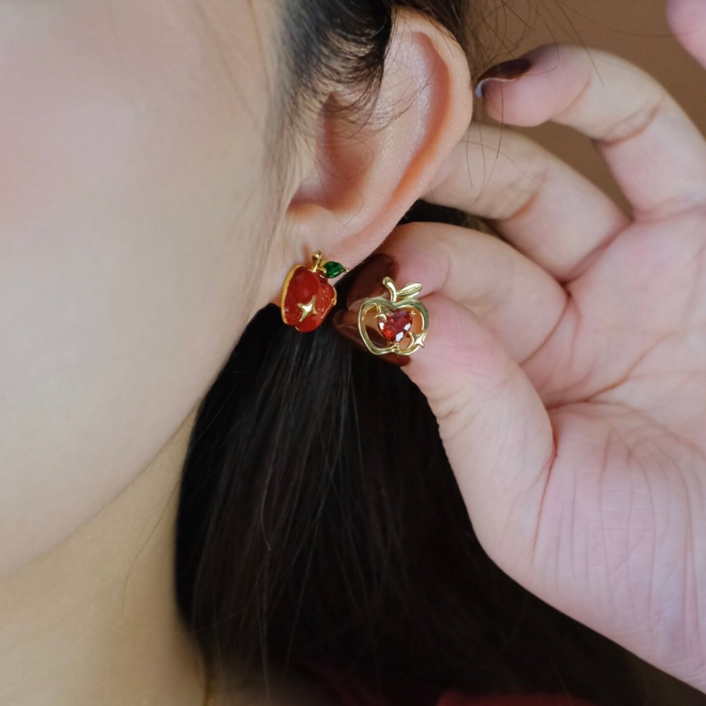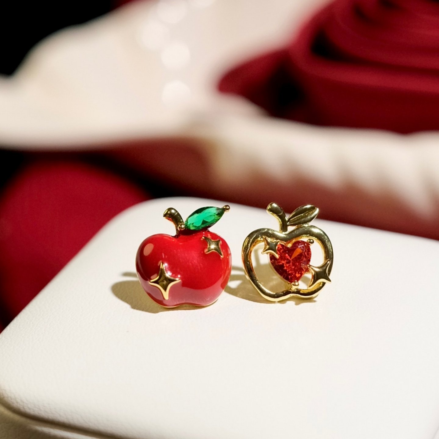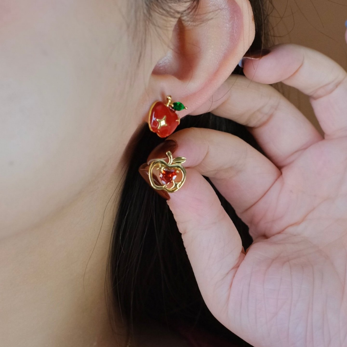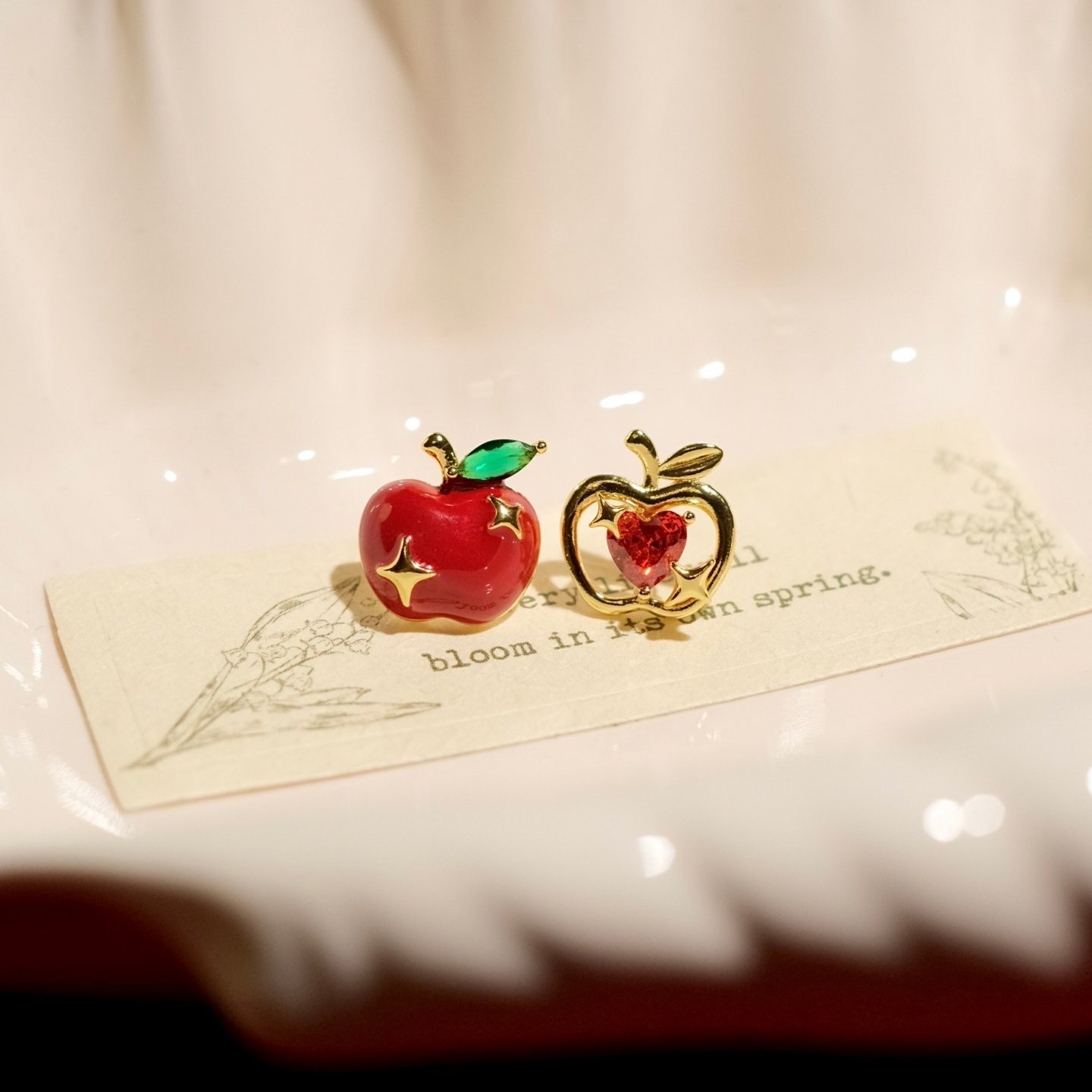 《童话苹果》小众设计少女心精致红色不对称耳钉新年款耳环耳夹