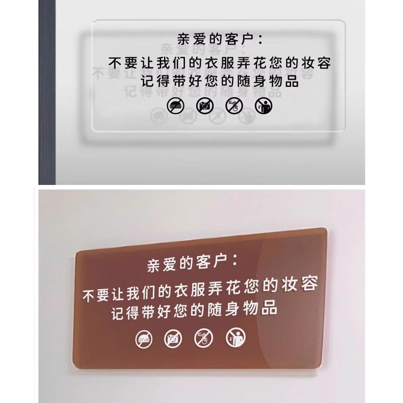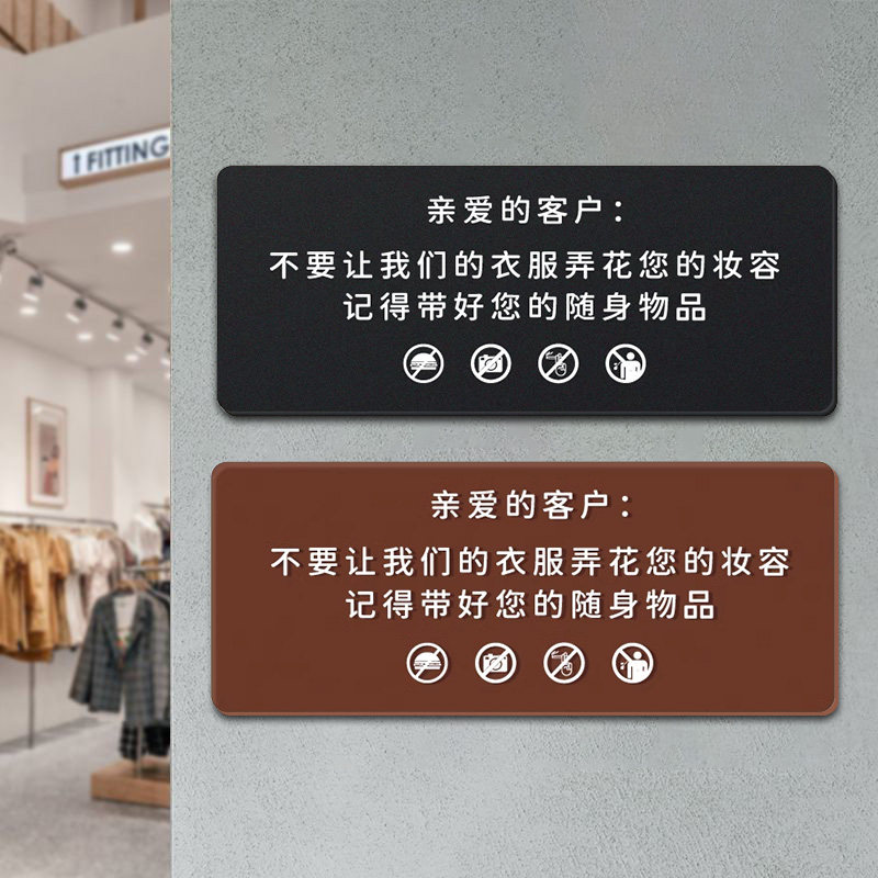 试衣间提示牌挂牌不要让衣服弄花了妆容口红温馨提示牌服装店商场试衣间亚克力告示牌请保管好贵重物品标识牌