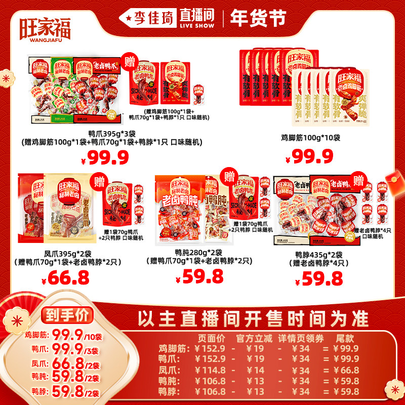 【李佳琦直播间新年置新家】旺家福老卤鸭爪鸡脚筋鸭肫凤爪鸭脖