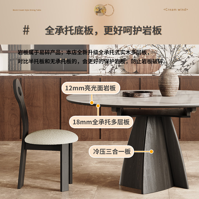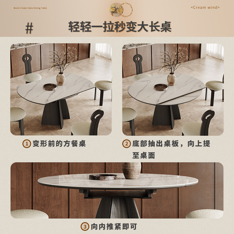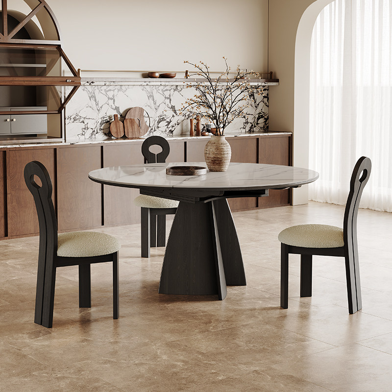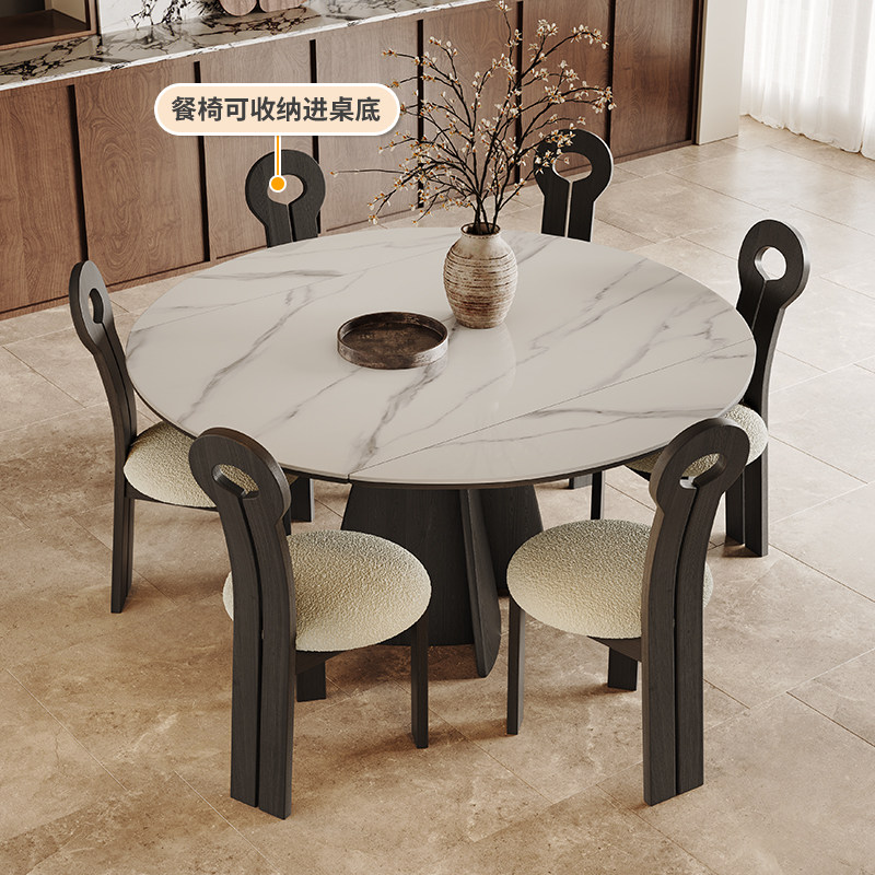 方圆两用岩板餐桌可伸缩小户型黑色意式极简方形变圆形实木餐桌